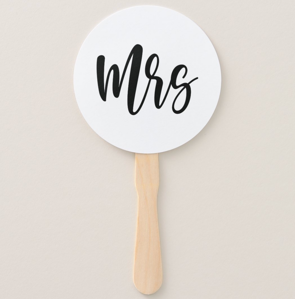 “我的天哪!”婚礼太热了(比喻,不是字面意思),你的宾客肯定需要一把风扇来降温。定制合适的风扇, 拥有并持有。