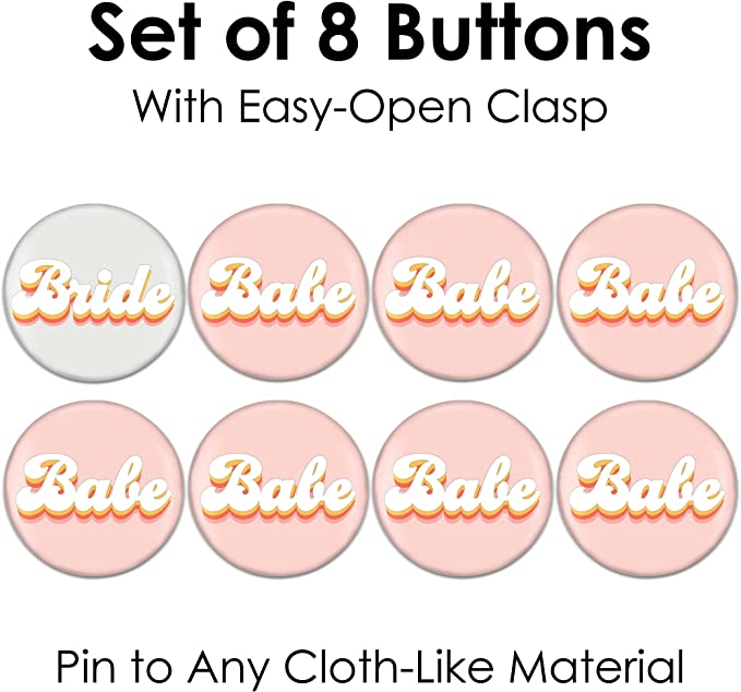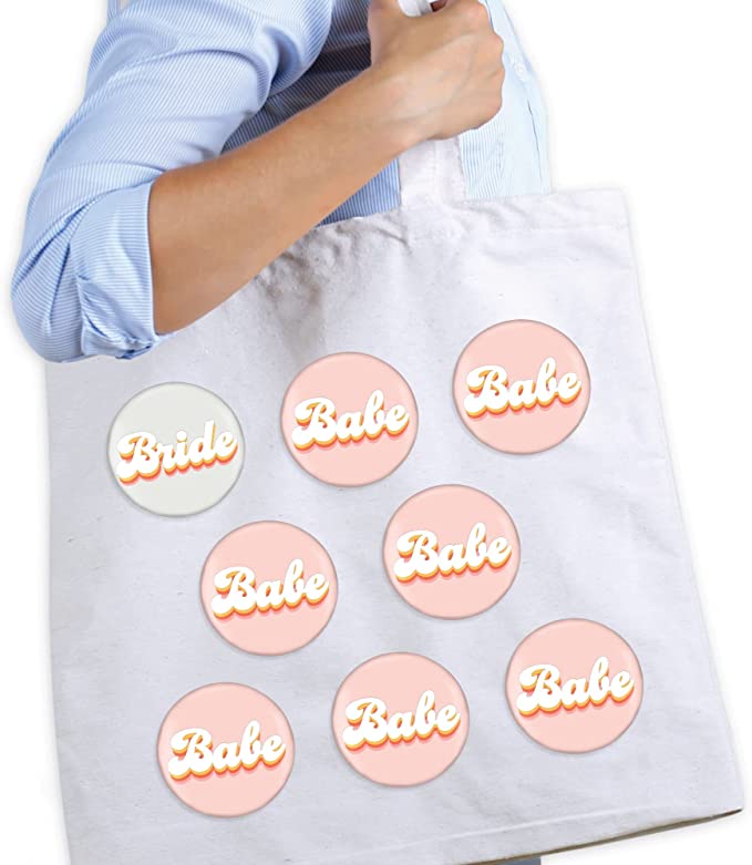 轻松传递信息:新娘宝贝徽章采用圆形设计,直径 3 英寸。每套包含 8 个新娘宝贝徽章,佩戴方便,彰显个性!在特殊聚会上分发给你们的团队,或单独分发。