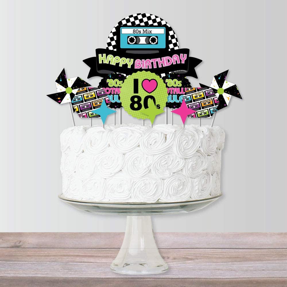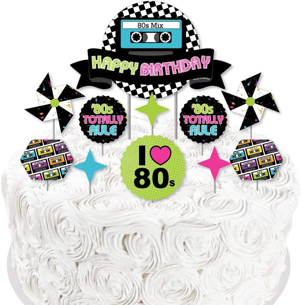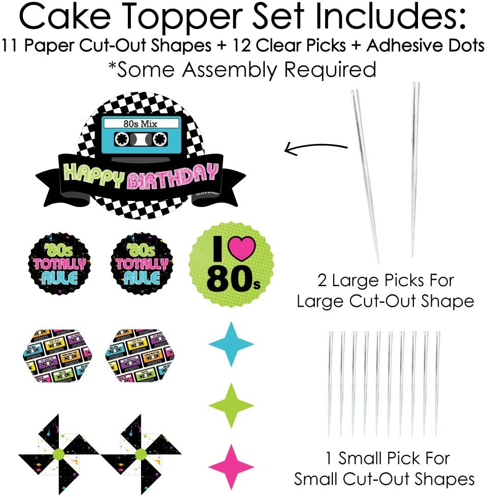 80 年代复古 - 完全 80 年代生日派对蛋糕装饰套装 - 生日快乐蛋糕装饰套装 - 11 件