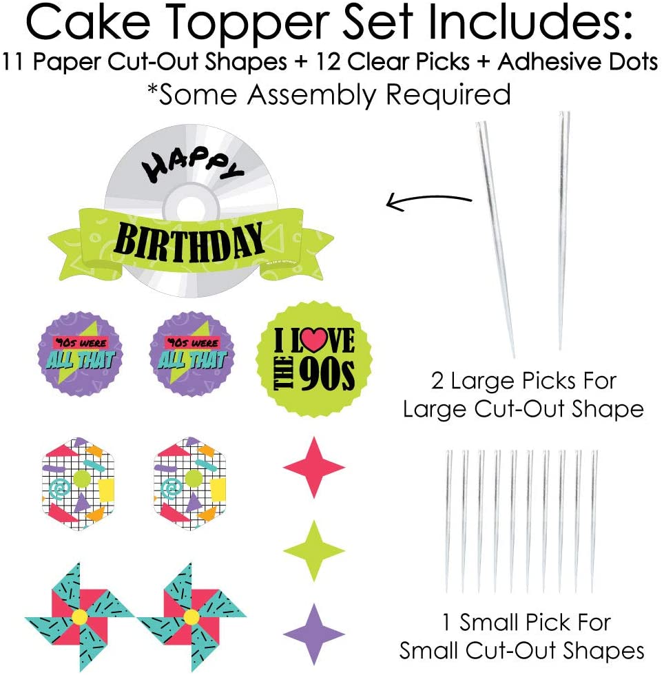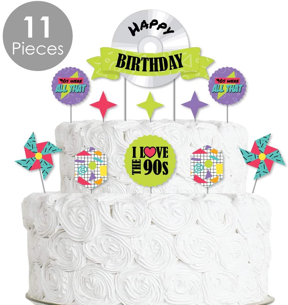 90 年代复古 - 20 世纪 90 年代生日派对蛋糕装饰套装 - 生日快乐蛋糕装饰套装 - 11 件