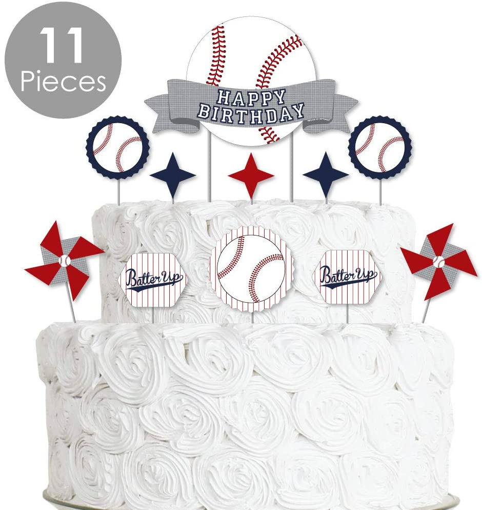 Batter Up - 棒球 - 生日派对蛋糕装饰套装 - 生日快乐蛋糕装饰套装 - 11 件