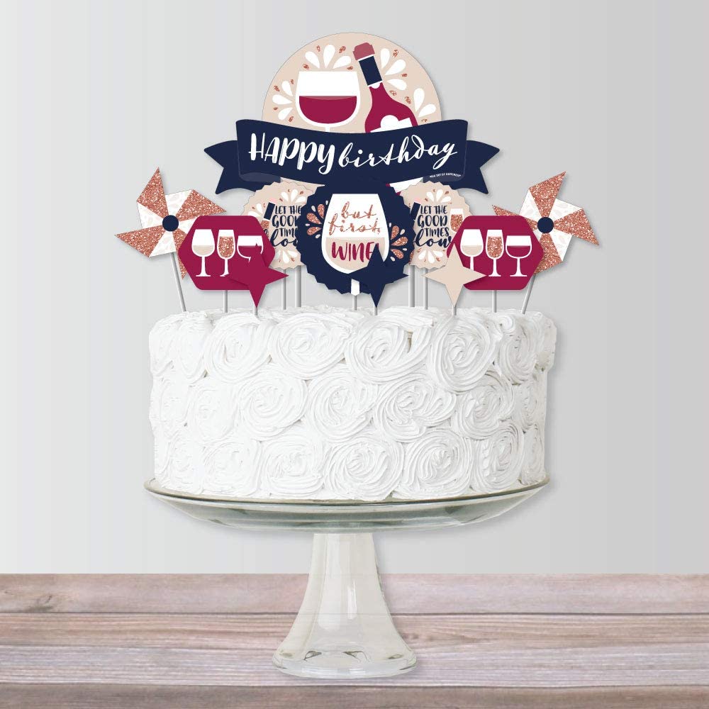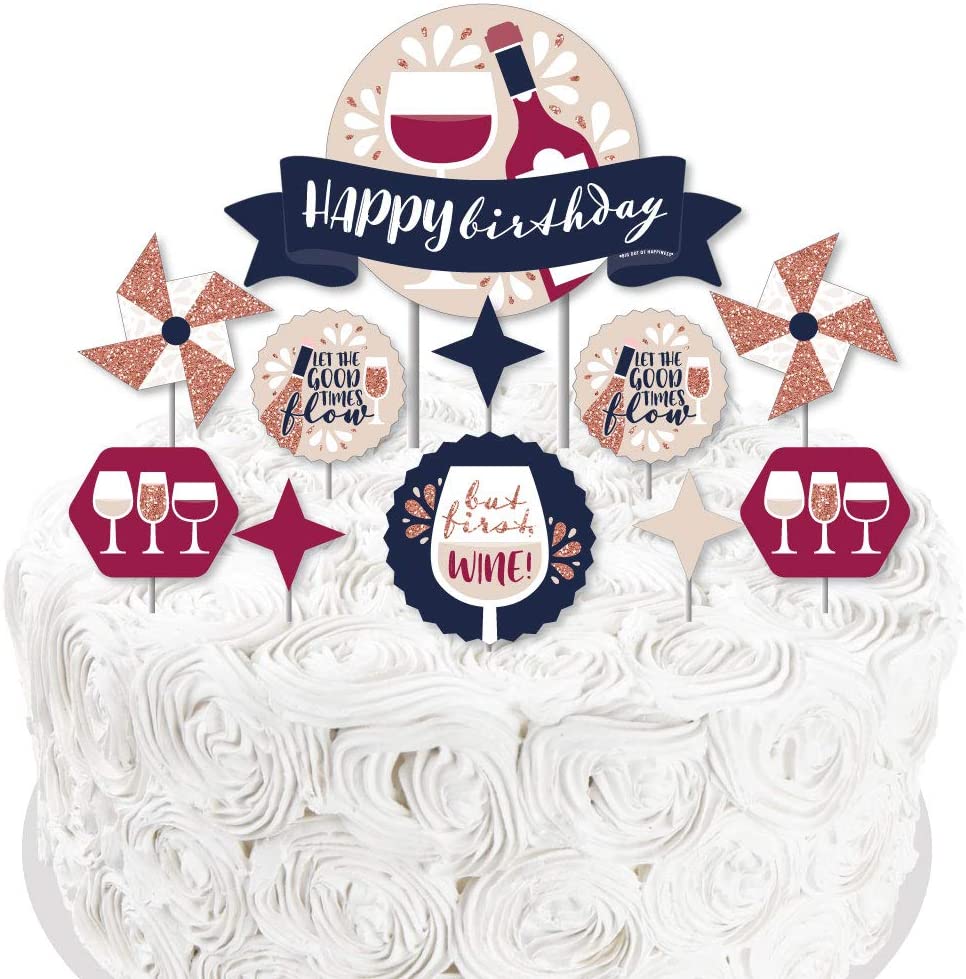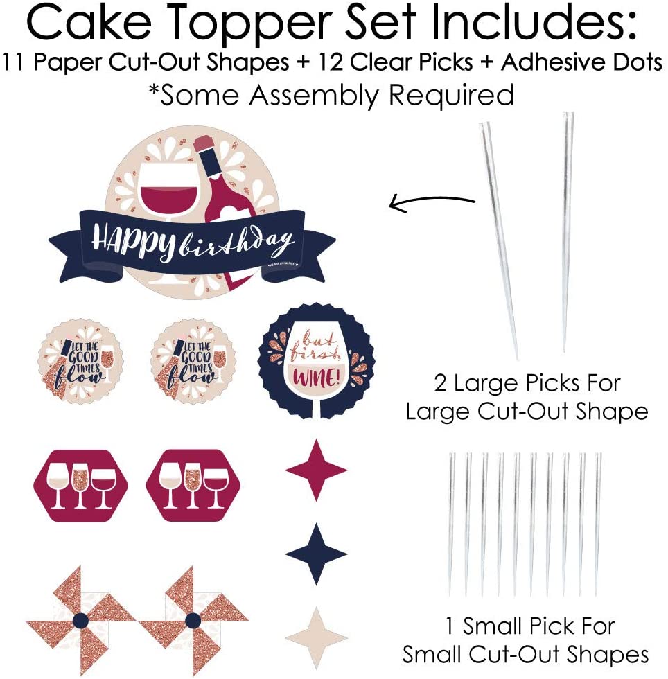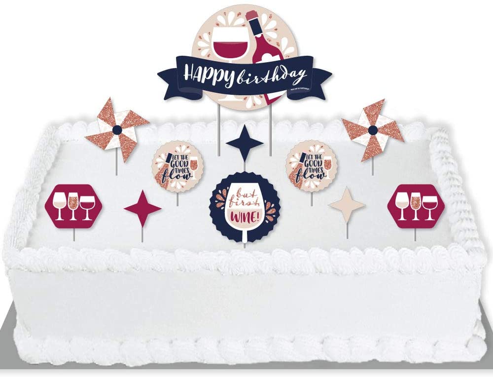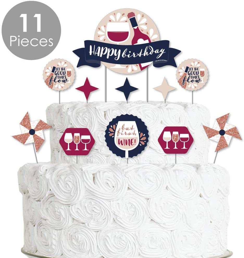 但首先,葡萄酒 - 品酒生日派对蛋糕装饰套装 - 生日快乐蛋糕装饰套装 - 11 件