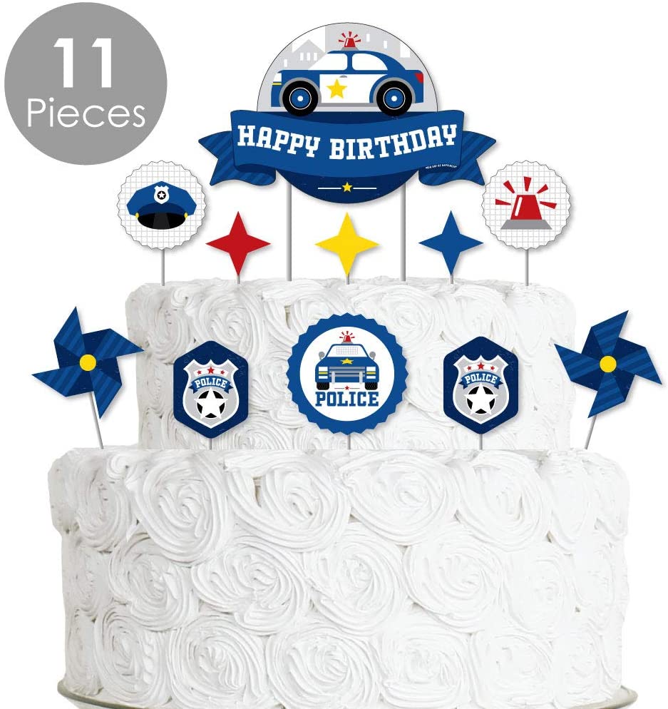 呼叫所有单位 - 警察 - 警察生日派对蛋糕装饰套件 - 生日快乐蛋糕装饰套装 - 11 件