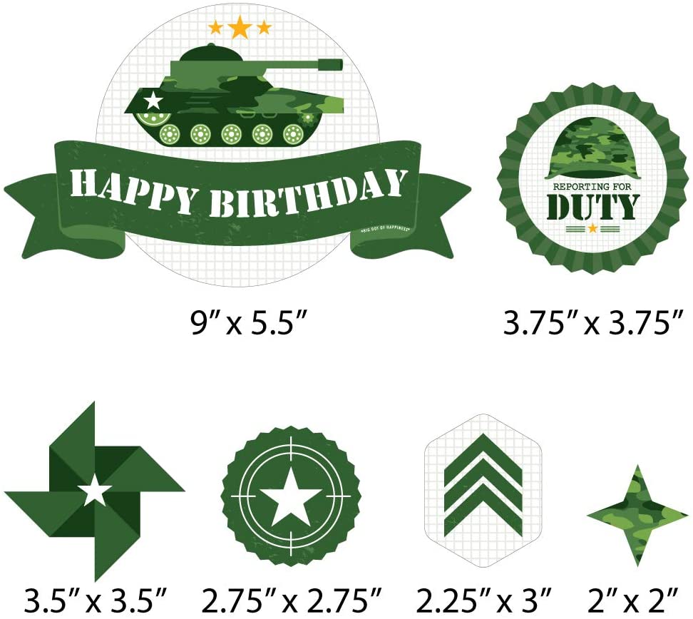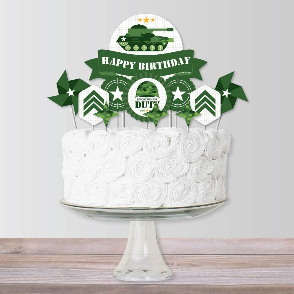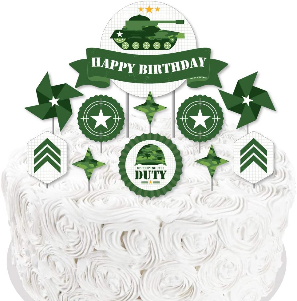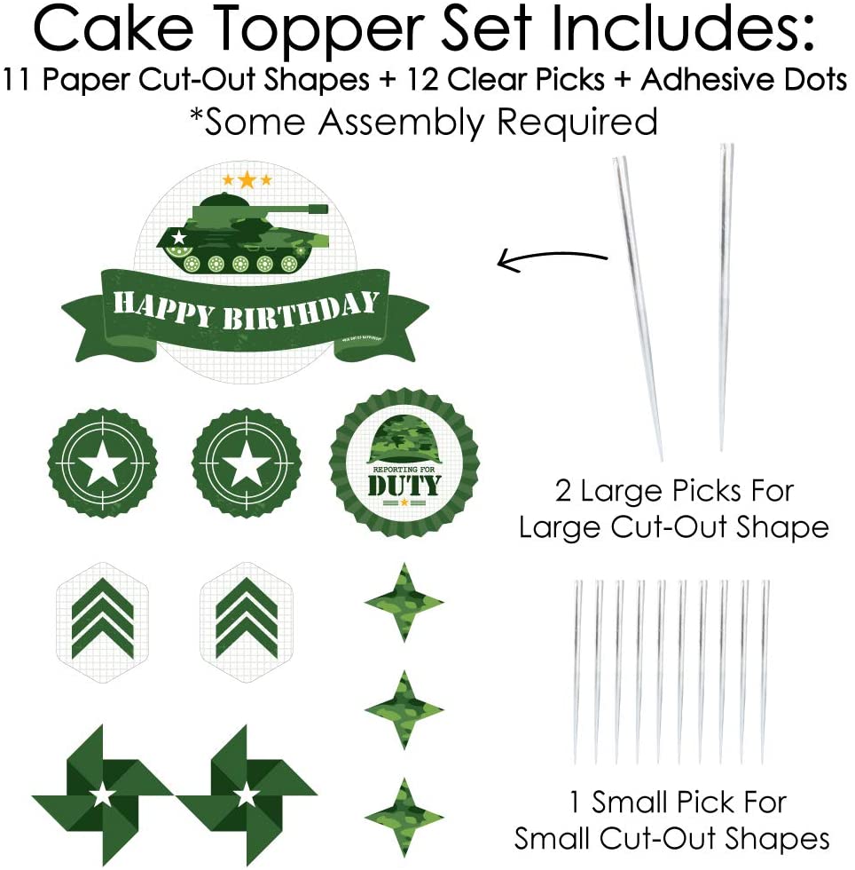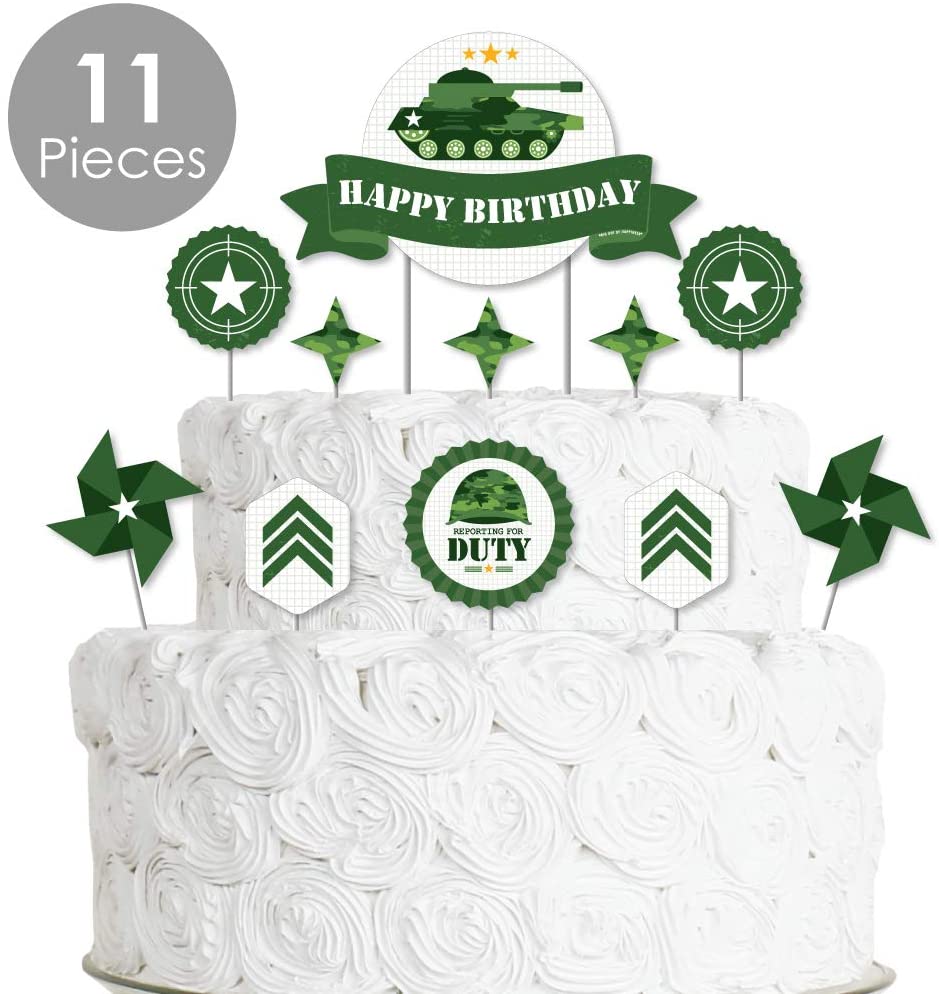 Camo Hero - 陆军军用迷彩生日派对蛋糕装饰套件 - 生日快乐蛋糕装饰套装 - 11 件