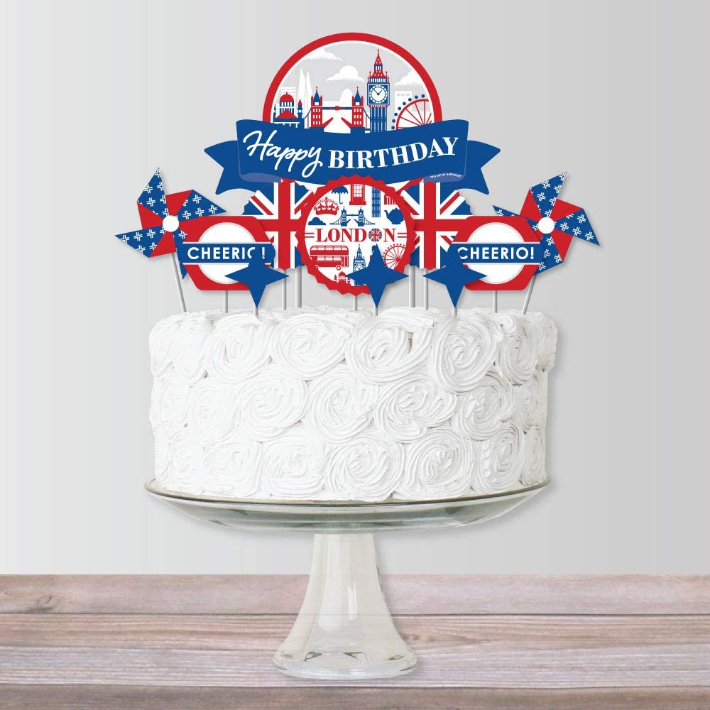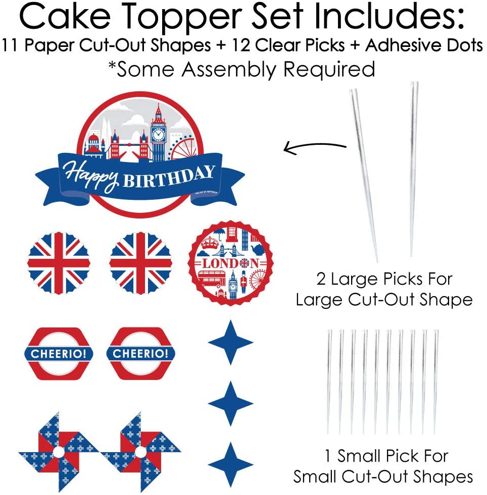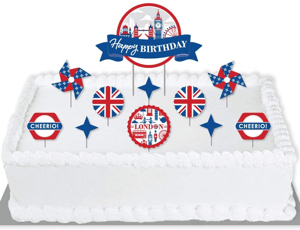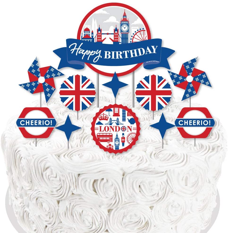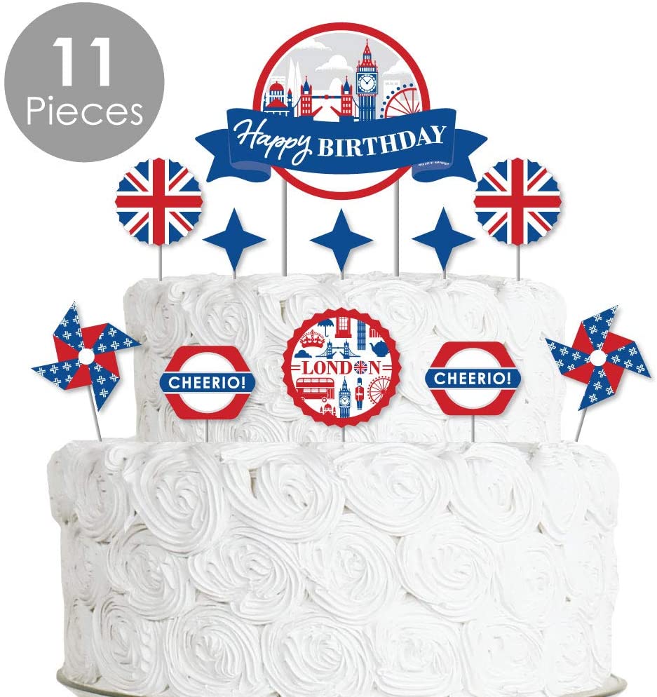 Cheerio,伦敦 - 英国生日派对蛋糕装饰套装 - 生日快乐蛋糕装饰套装 - 11 件