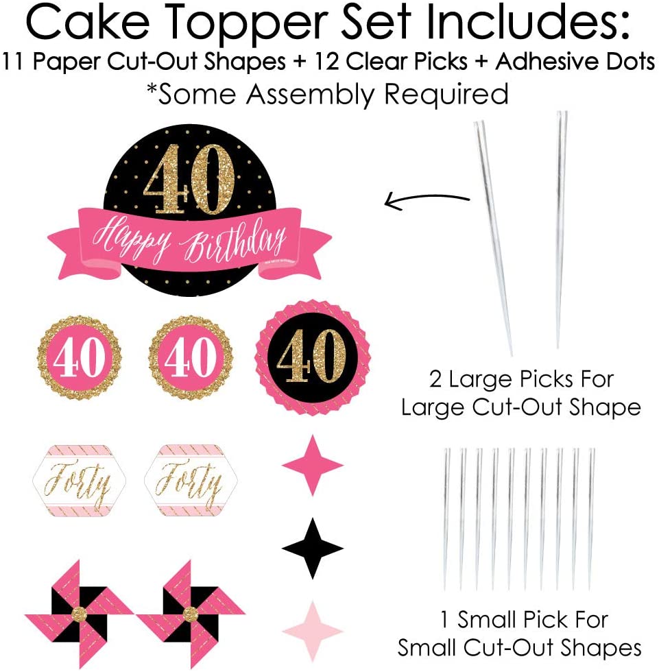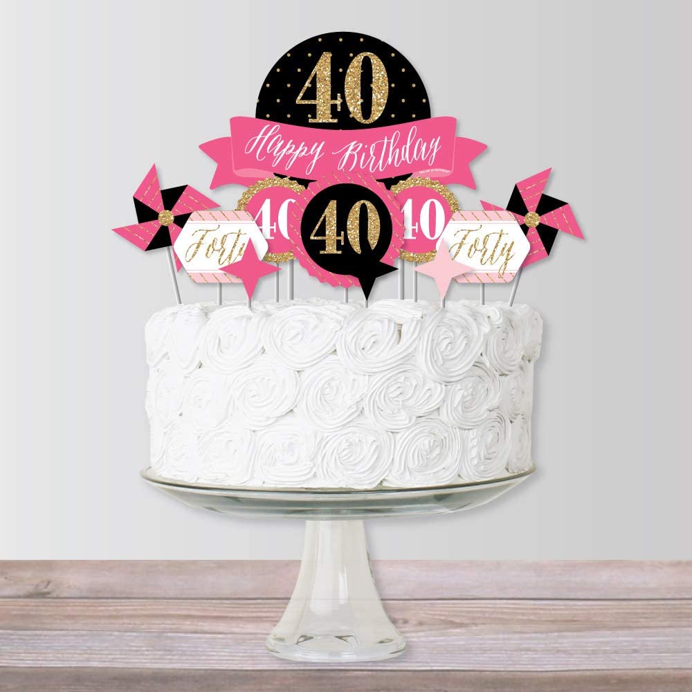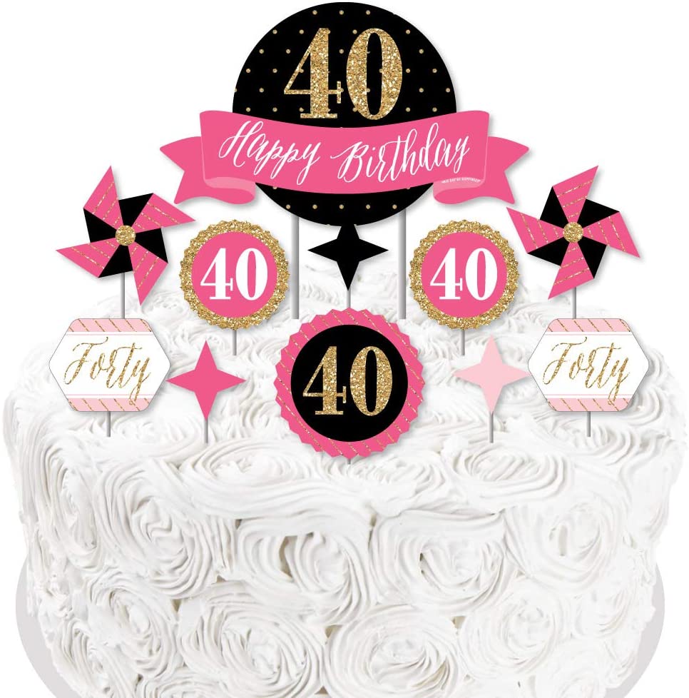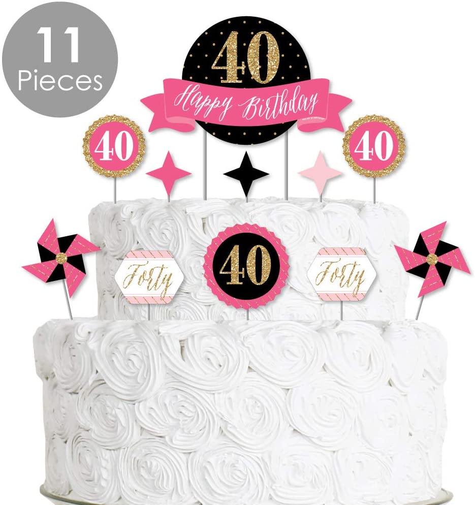 别致的 40 岁生日 - 粉色、黑色和金色 - 生日派对蛋糕装饰套装 - 生日快乐蛋糕装饰套装 - 11 件 已缺货,一旦有货就会发货。