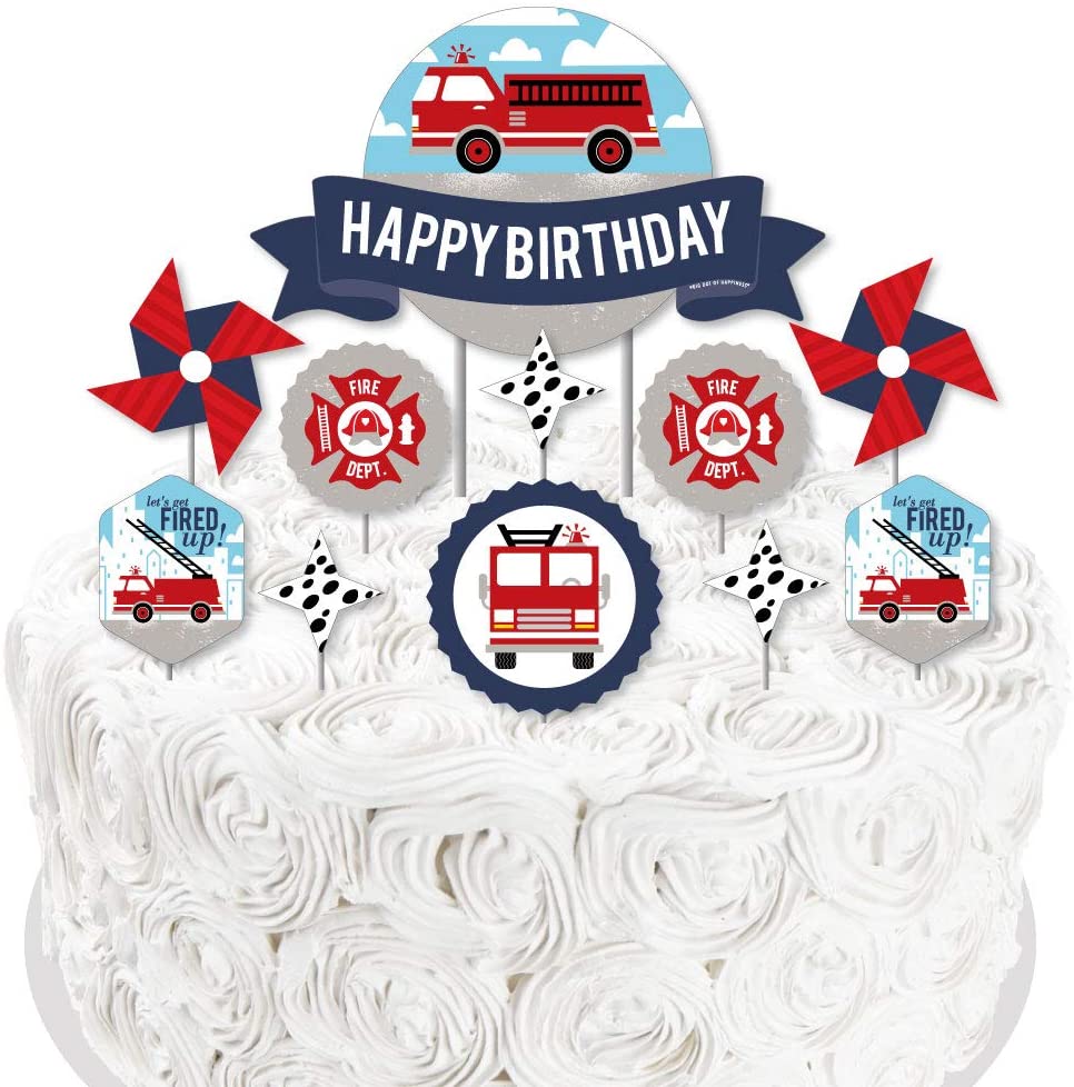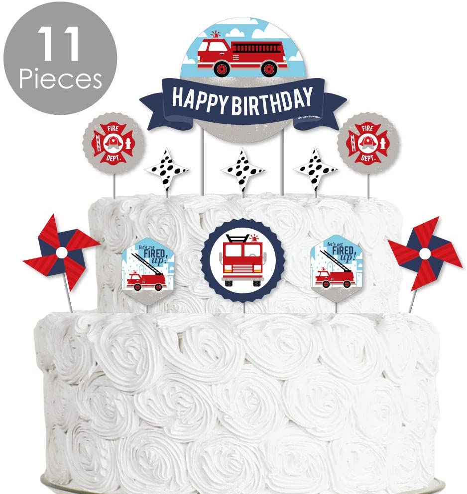 Fired Up Fire Truck - 消防员消防车生日派对蛋糕装饰套件 - 生日快乐蛋糕装饰套装 - 11 件 已缺货,一旦有货就会发货。