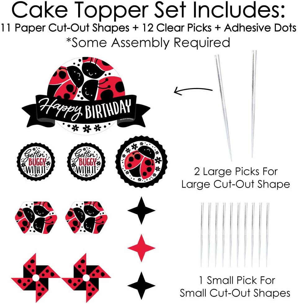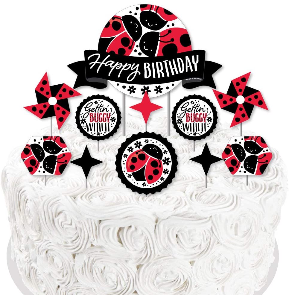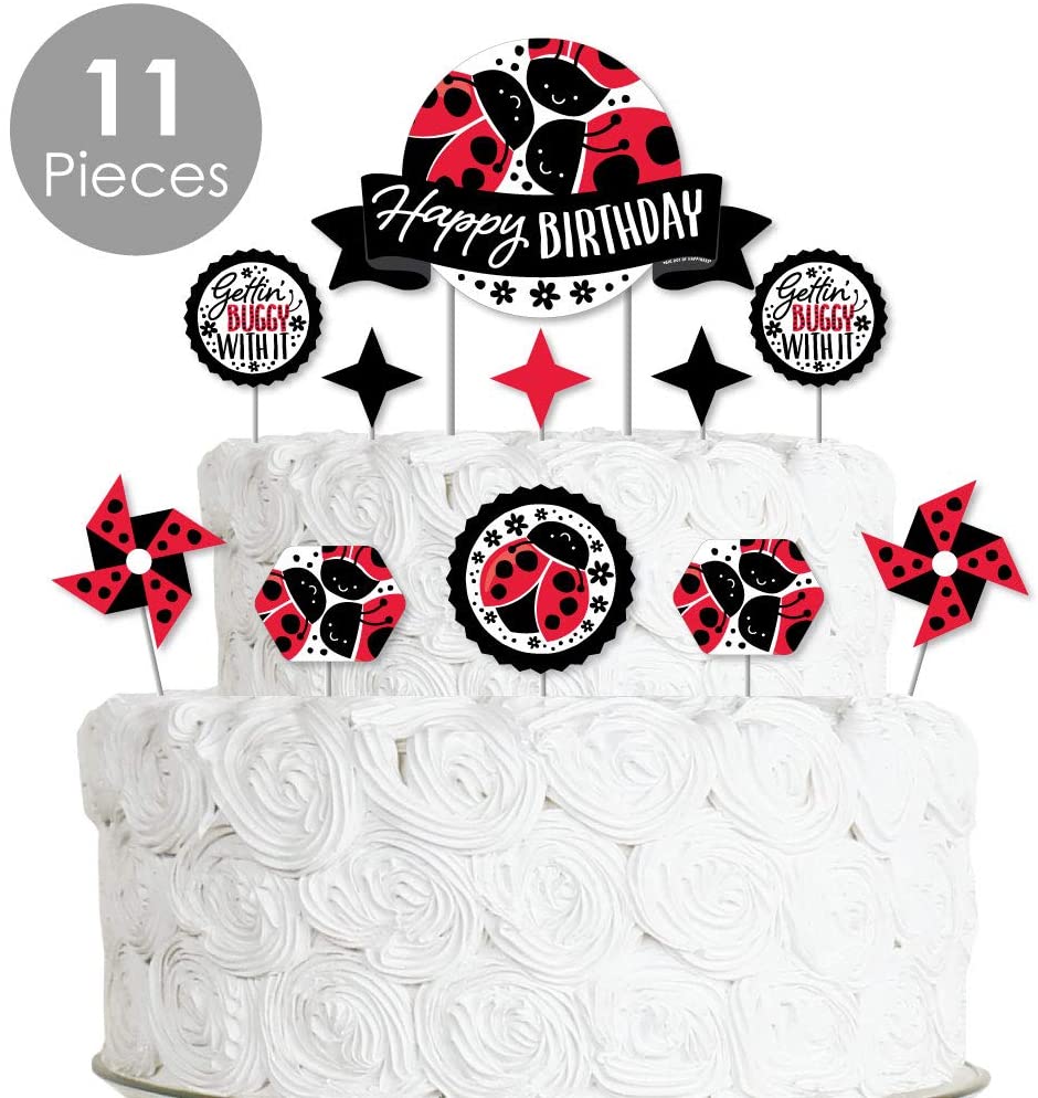 快乐小瓢虫 - 生日派对蛋糕装饰套装 - 生日快乐蛋糕装饰套装 - 11 件