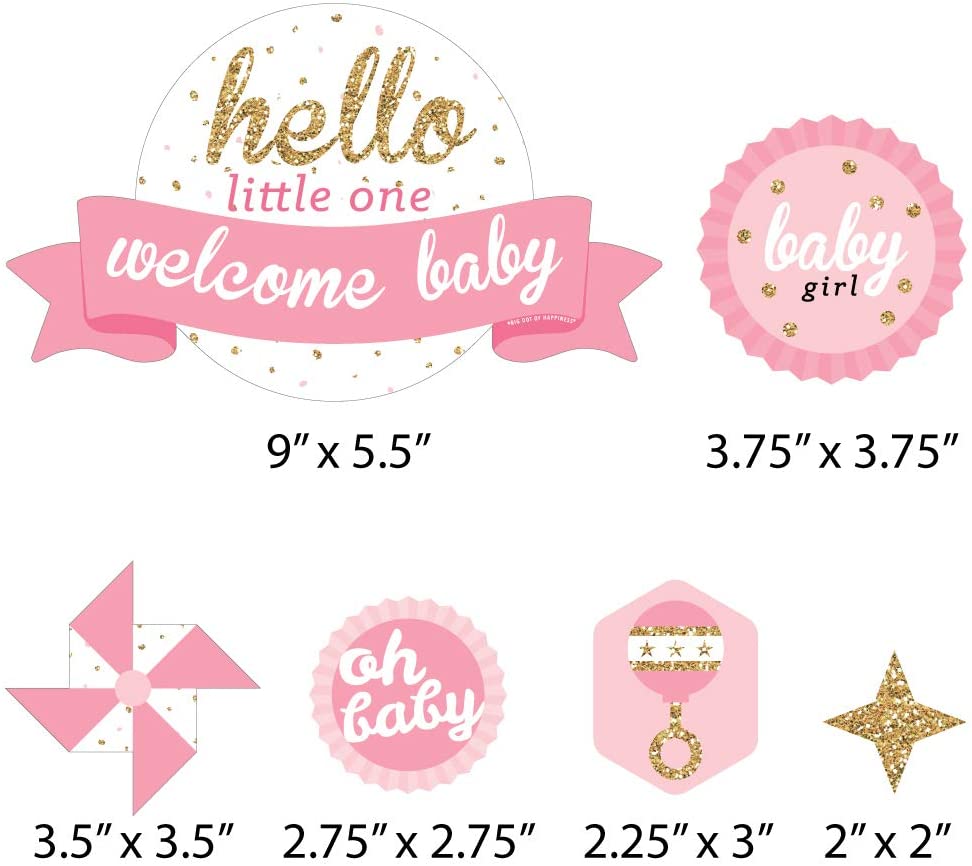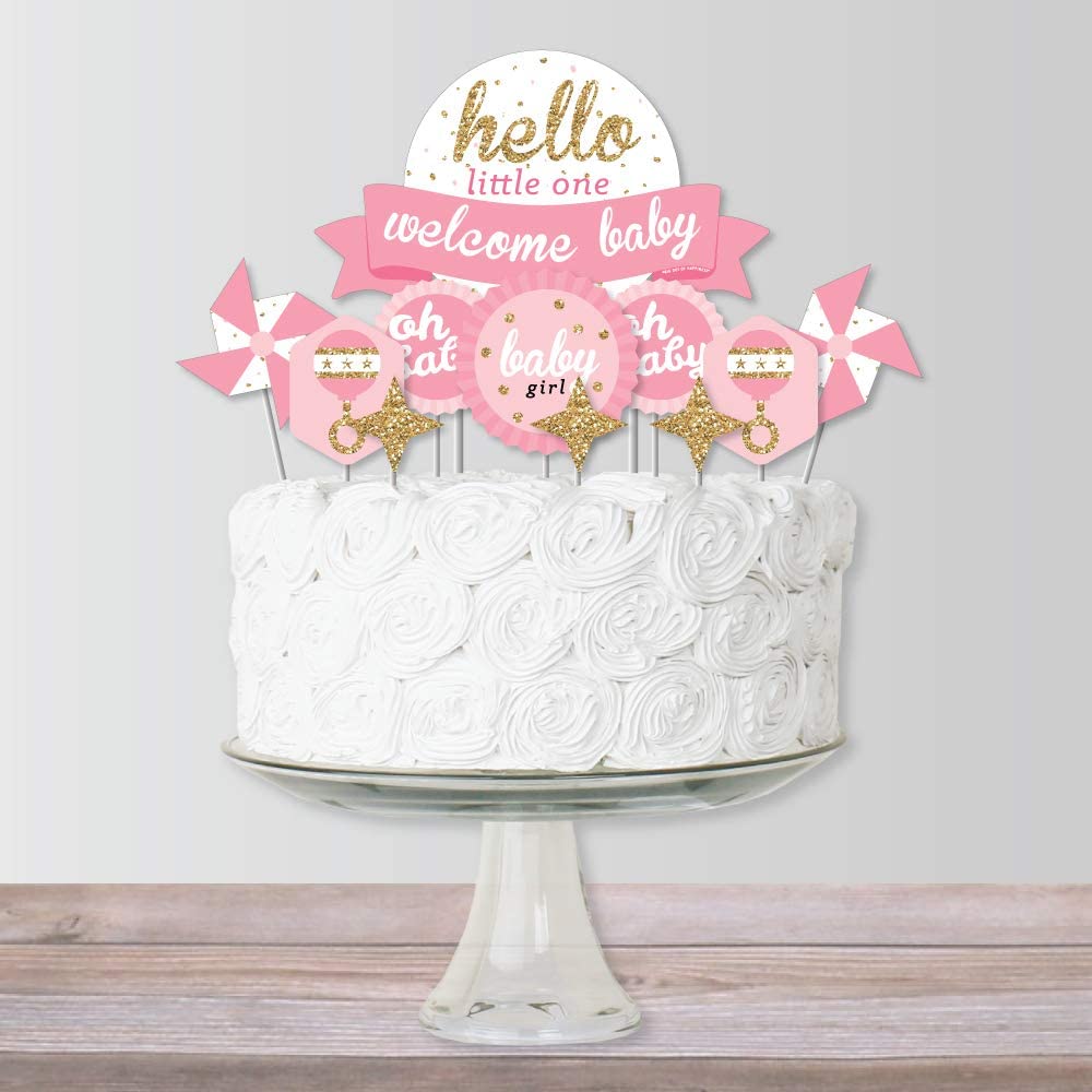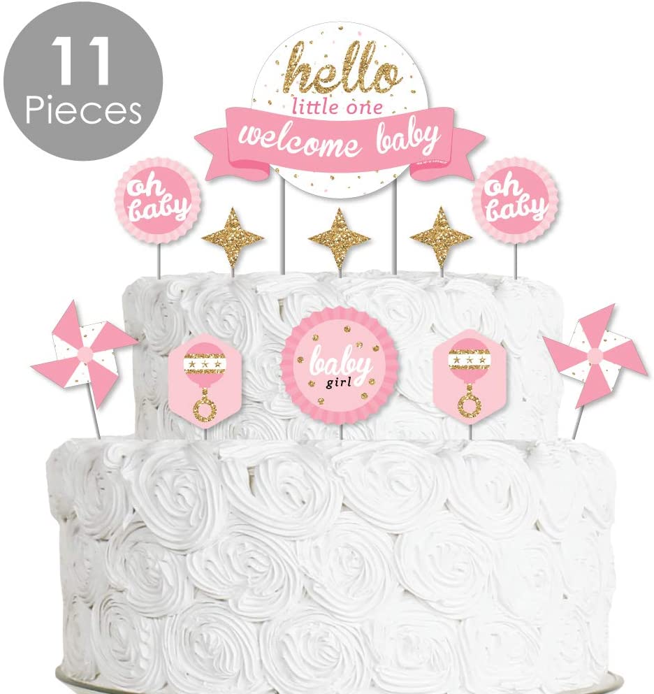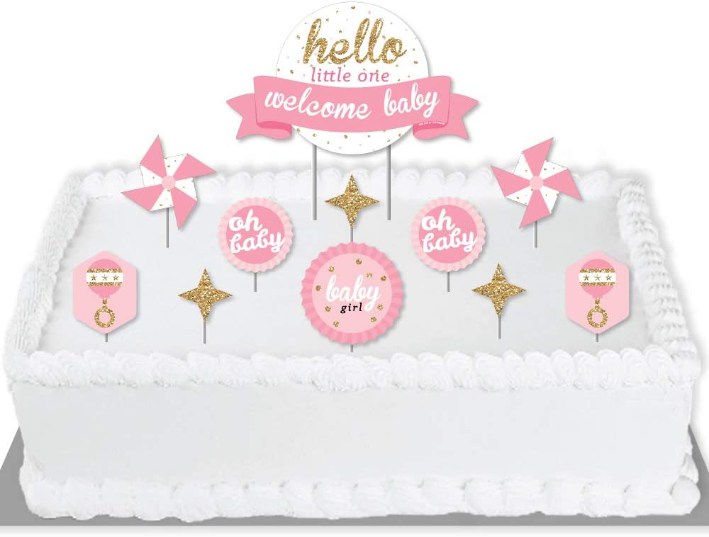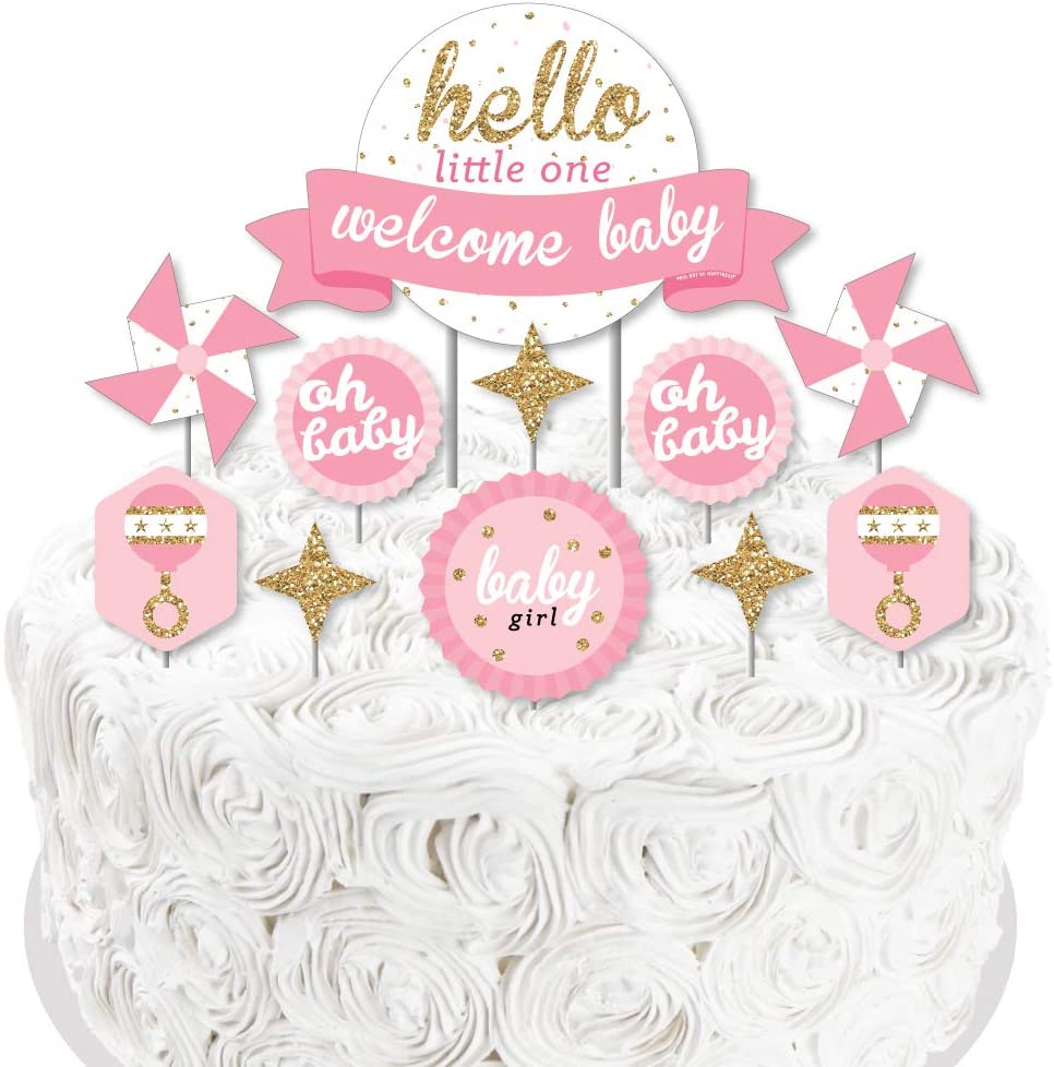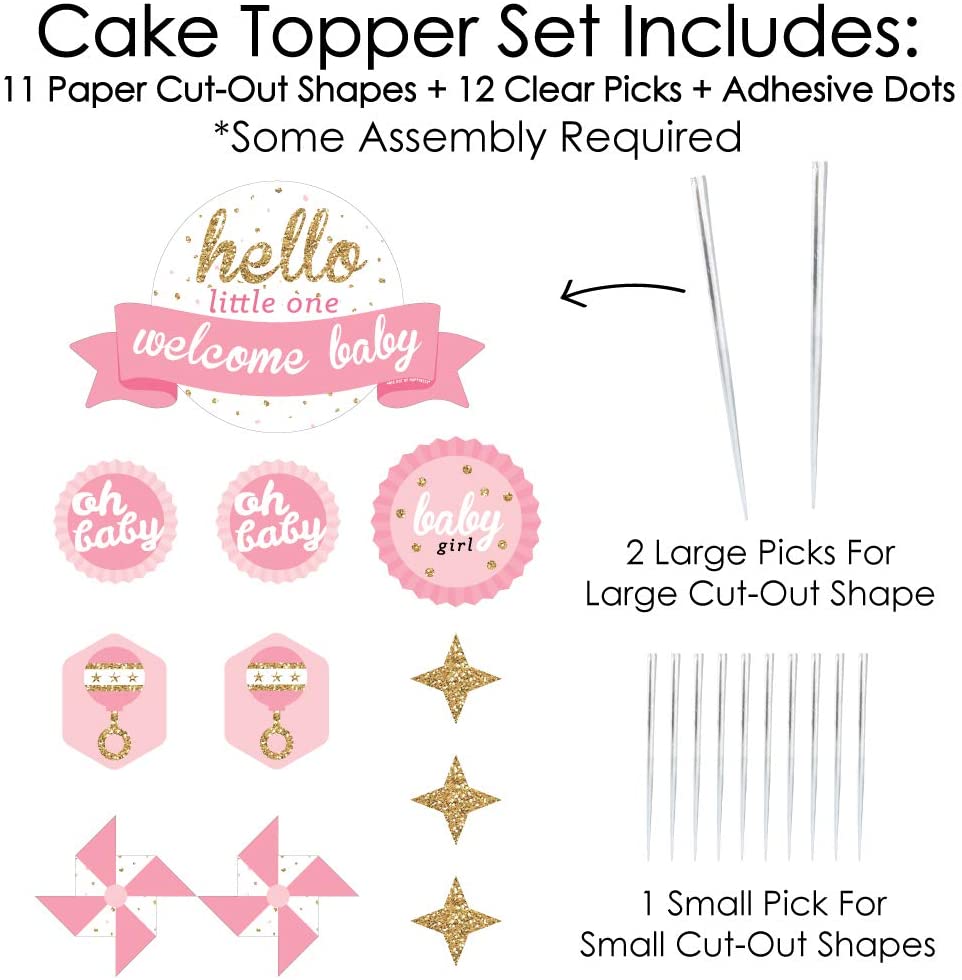你好小家伙 - 粉色和金色 - 女婴派对蛋糕装饰套装 - 欢迎宝宝蛋糕装饰套装 - 11 件