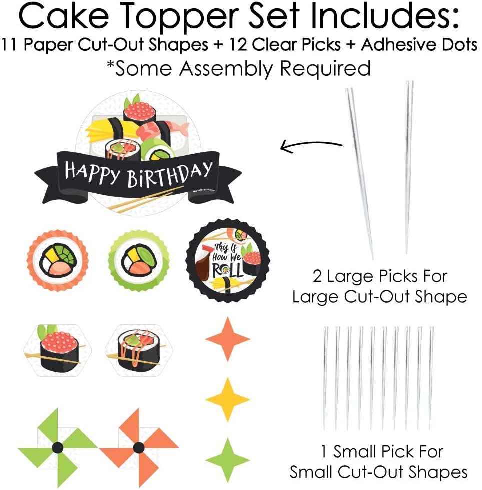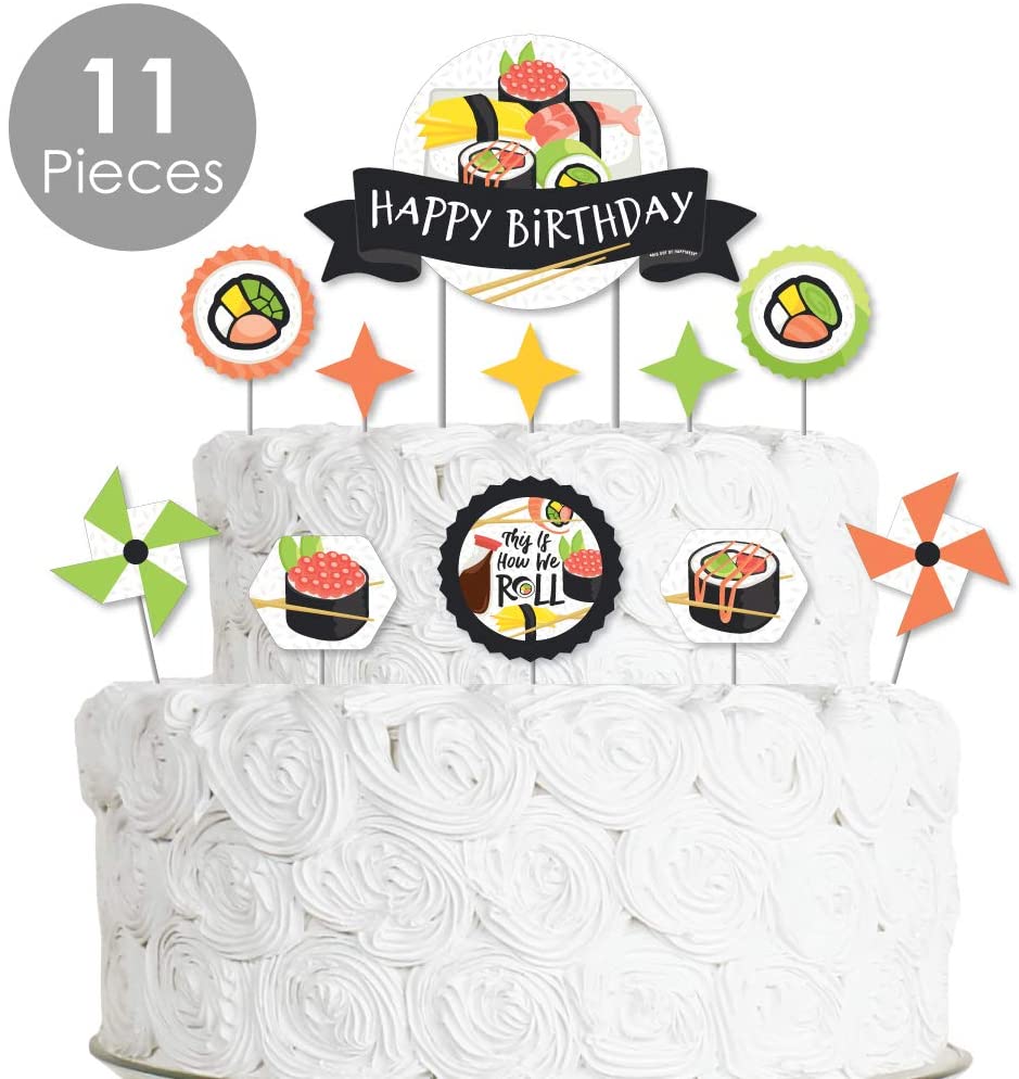 Let's Roll - 寿司 - 日式生日派对蛋糕装饰套装 - 生日快乐蛋糕装饰套装 - 11 件
