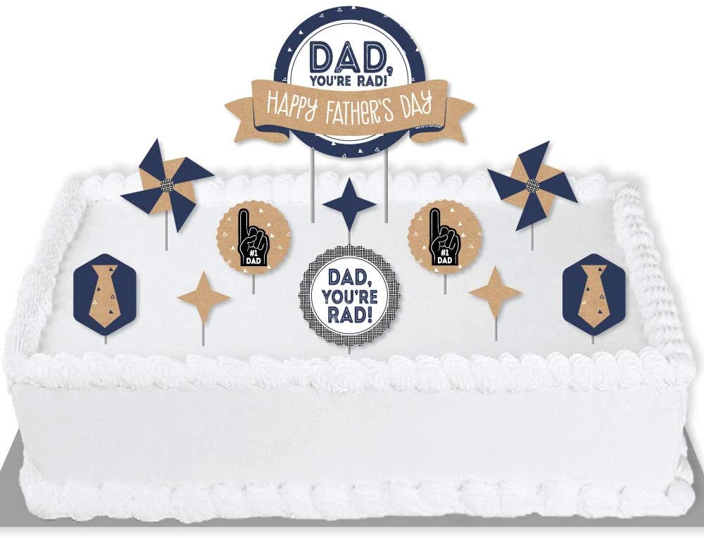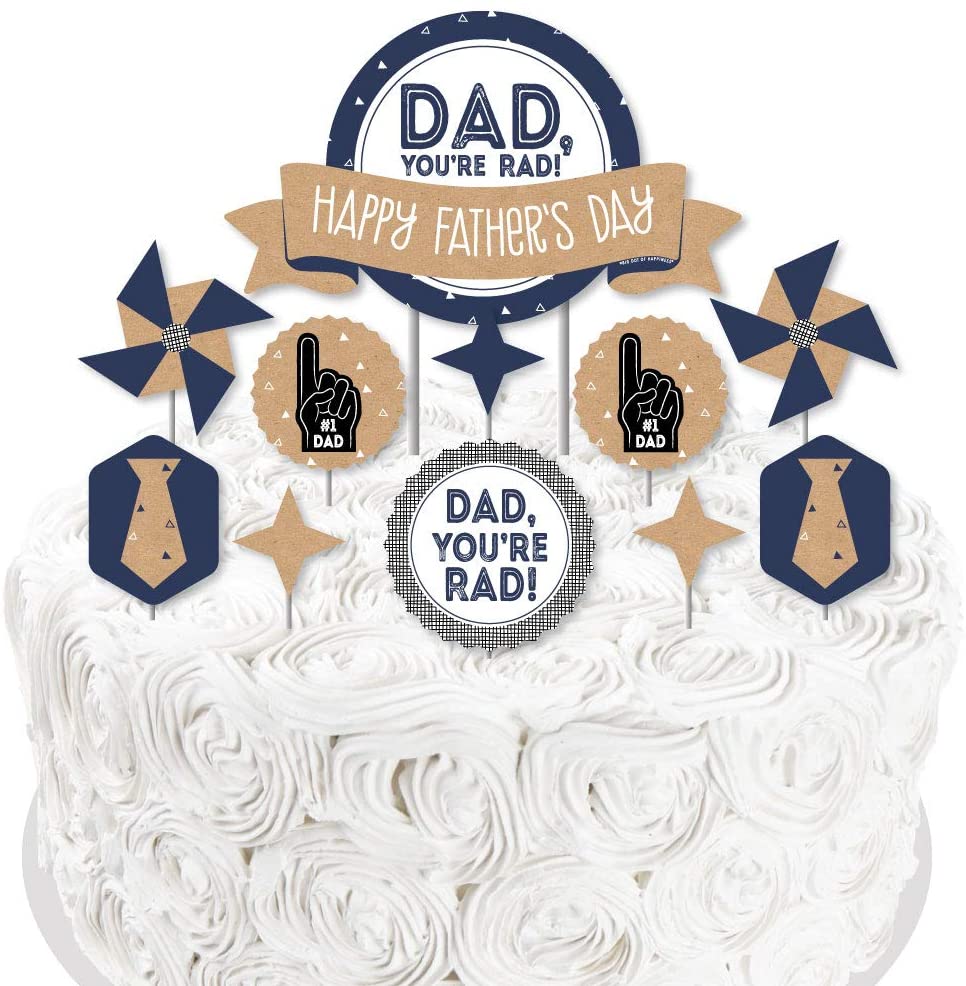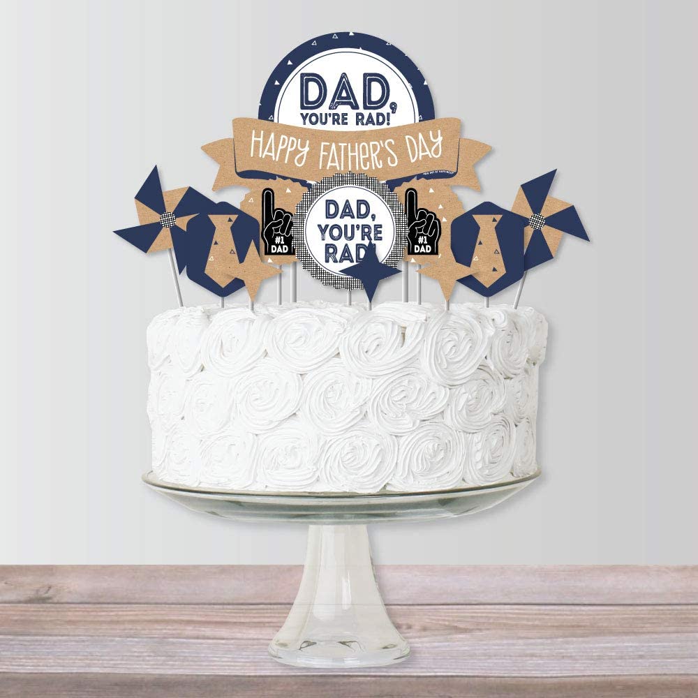 高品质派对用品:My Dad is Rad 蛋糕装饰物采用专业单面印刷,印在结实的卡纸上。透明拨片采用食品级塑料制成,并采用食品级安全包装。蛋糕装饰物可快速粘贴到透明拨片上,每个装饰物的高度取决于塑料拨片粘贴到蛋糕装饰物上的位置。请注意:蛋糕装饰物为纸质,请勿放置在燃烧的蜡烛附近。