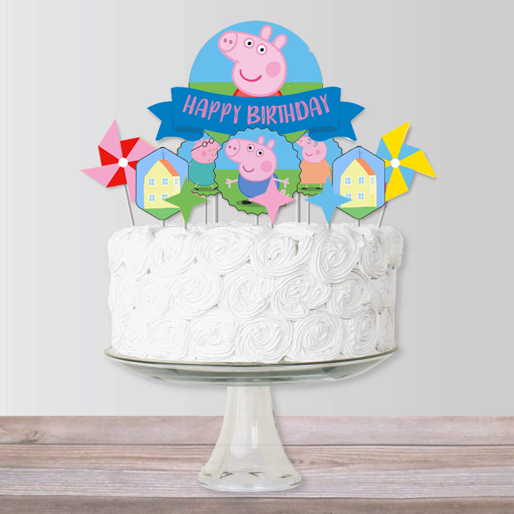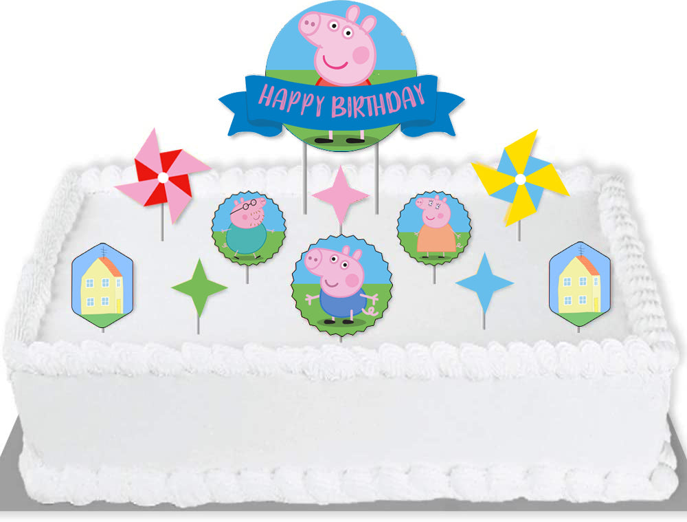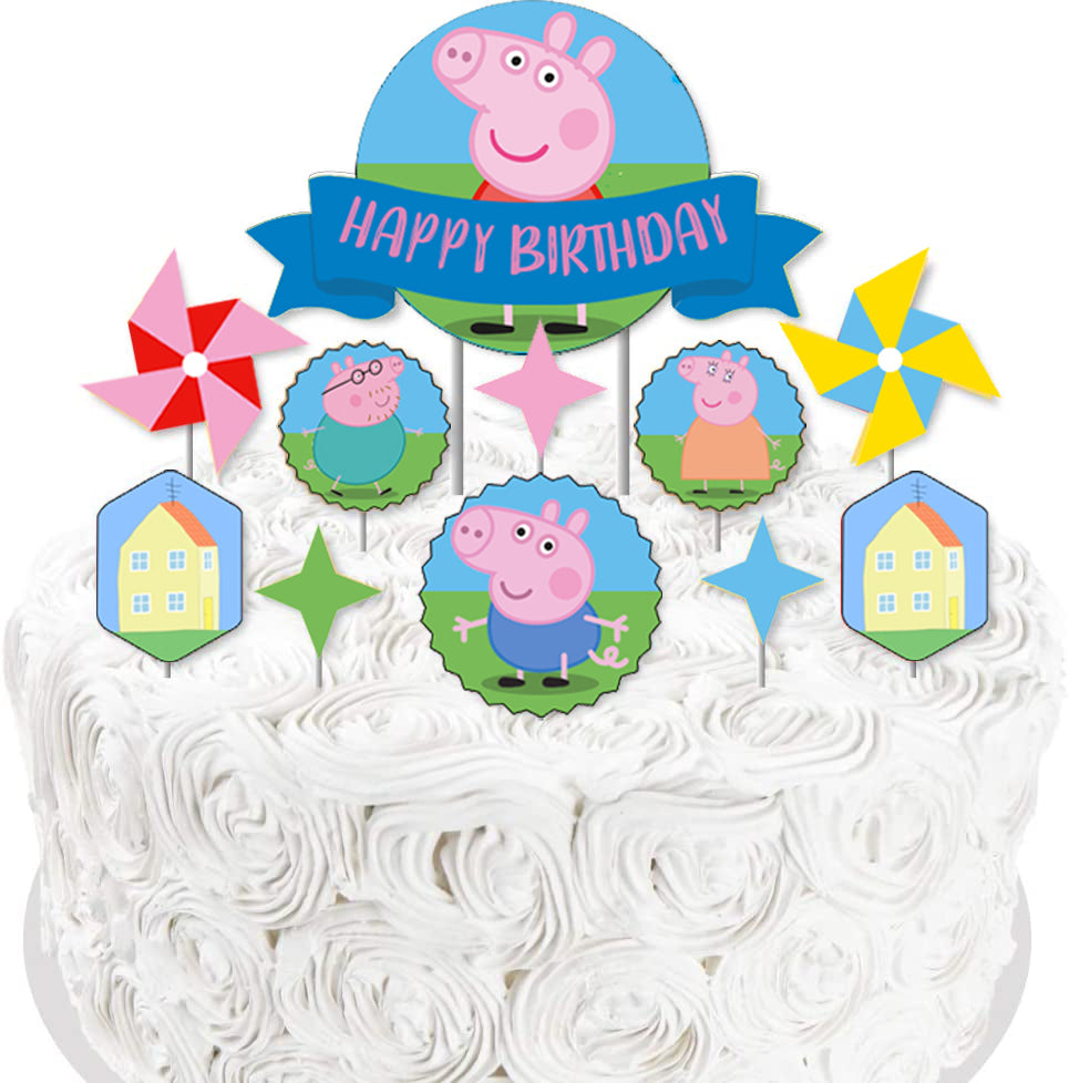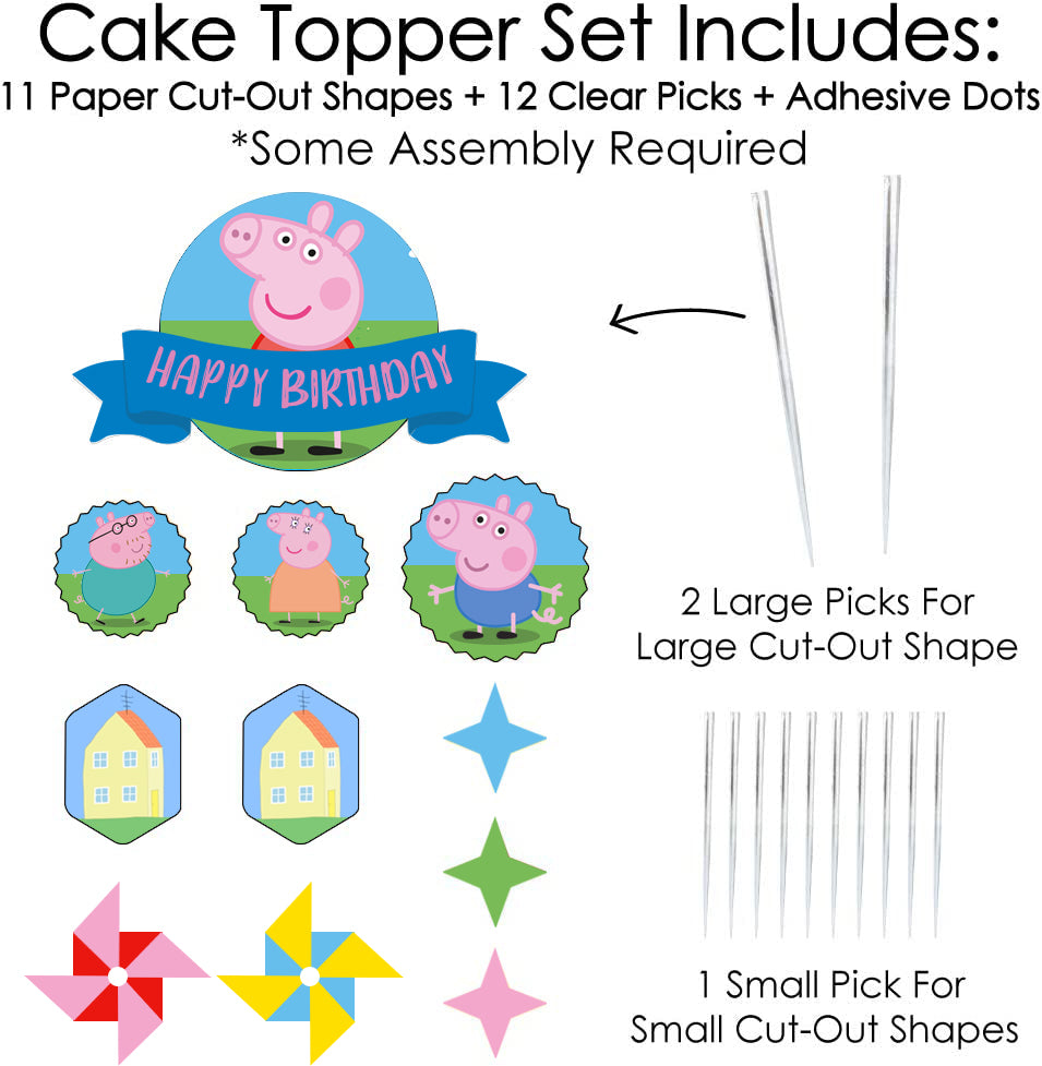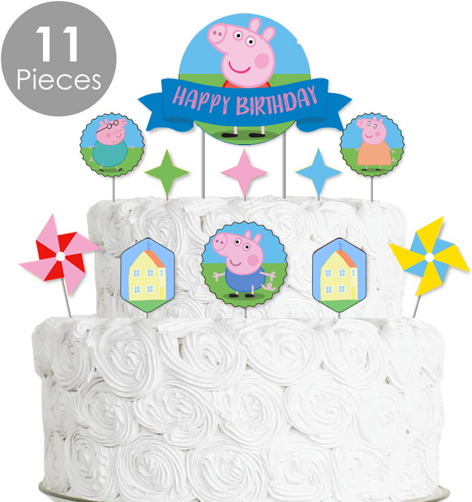 小猪佩奇 - 生日派对蛋糕装饰套装 - 生日快乐蛋糕装饰套装 - 11 件