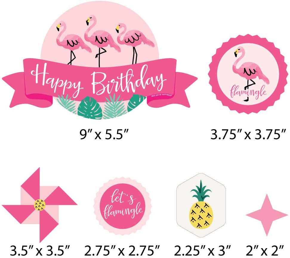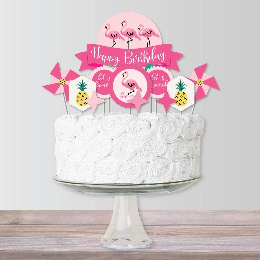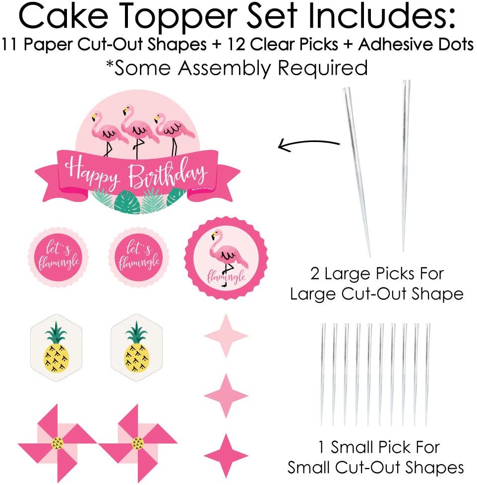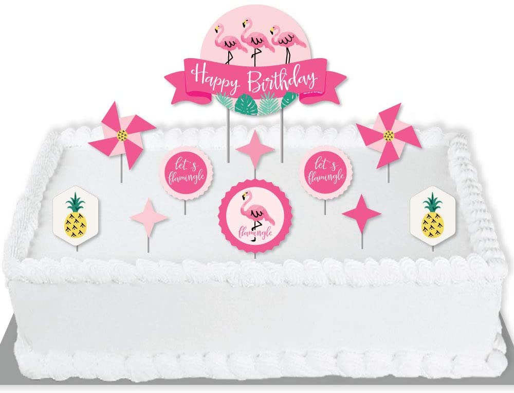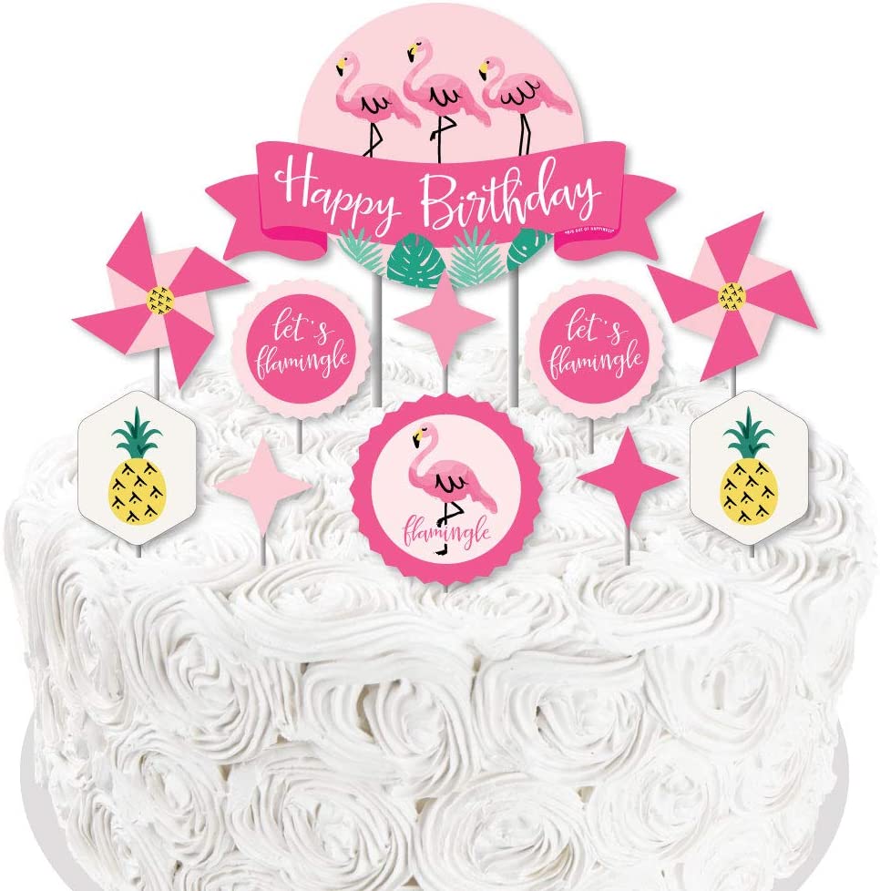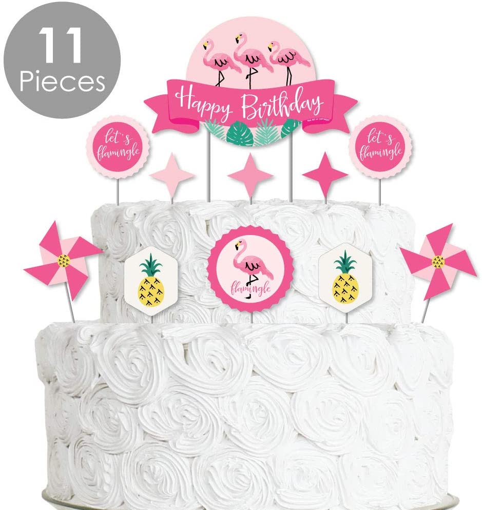 粉色火烈鸟 - 菠萝派对 - 热带夏日生日派对蛋糕装饰套装 - 生日快乐蛋糕装饰套装 - 11 件
