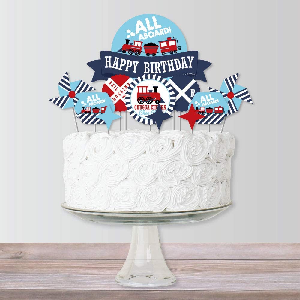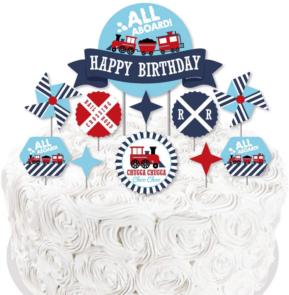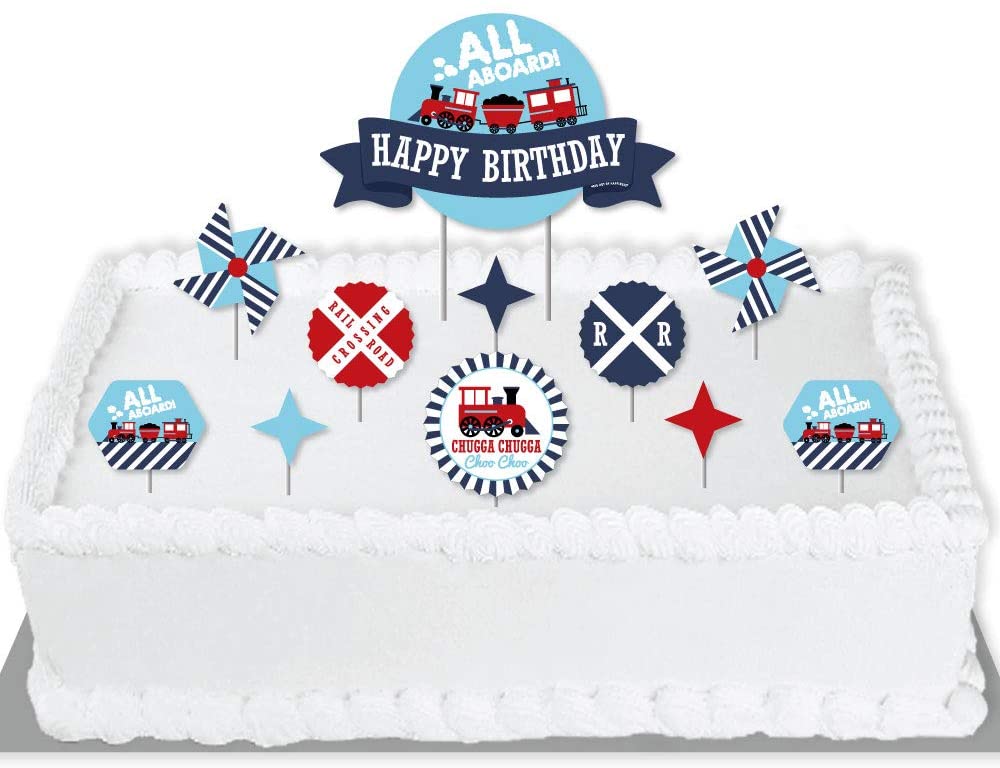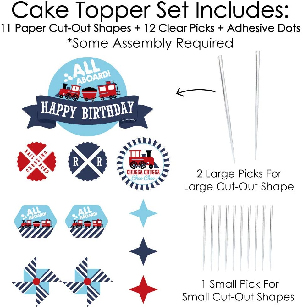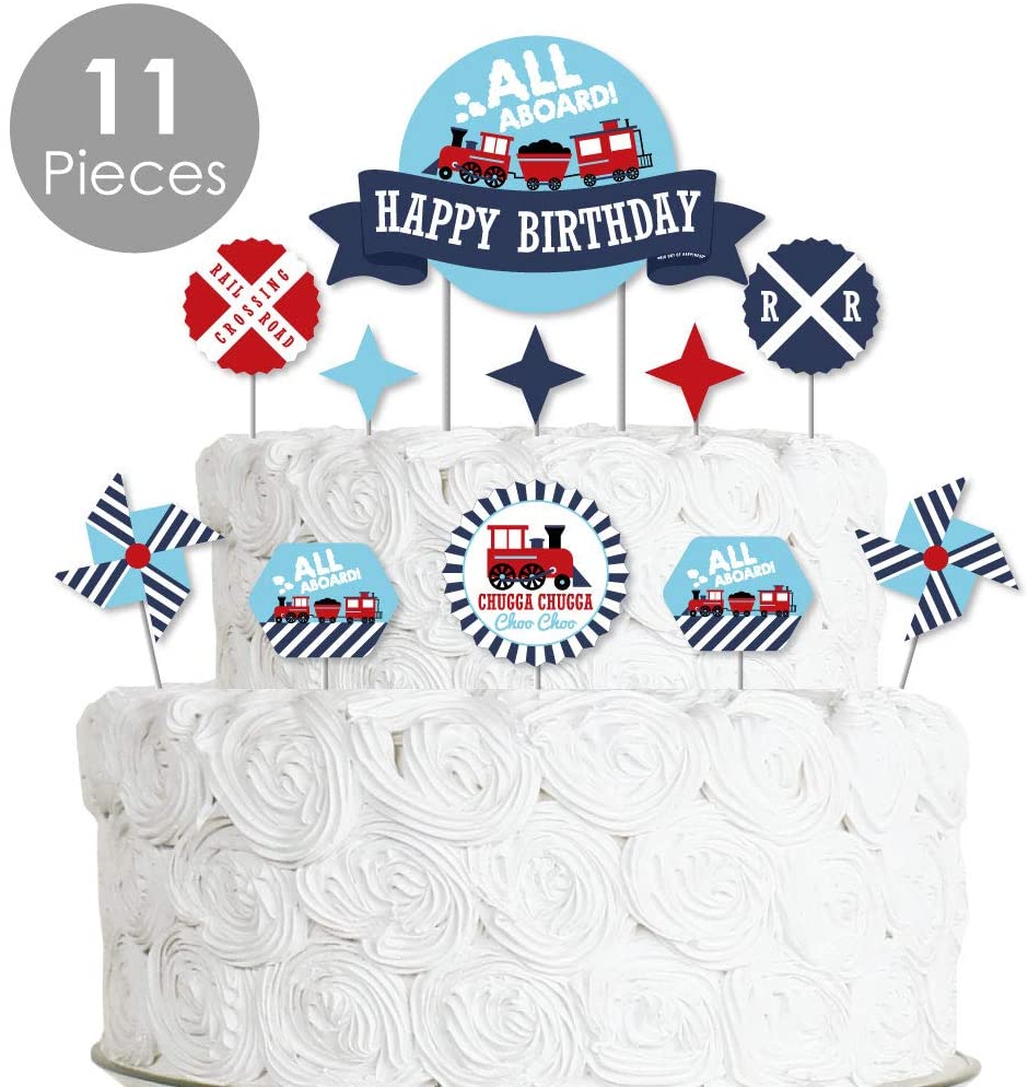 铁路派对道口 - 蒸汽火车生日派对蛋糕装饰套件 - 生日快乐蛋糕装饰套装 - 11 件