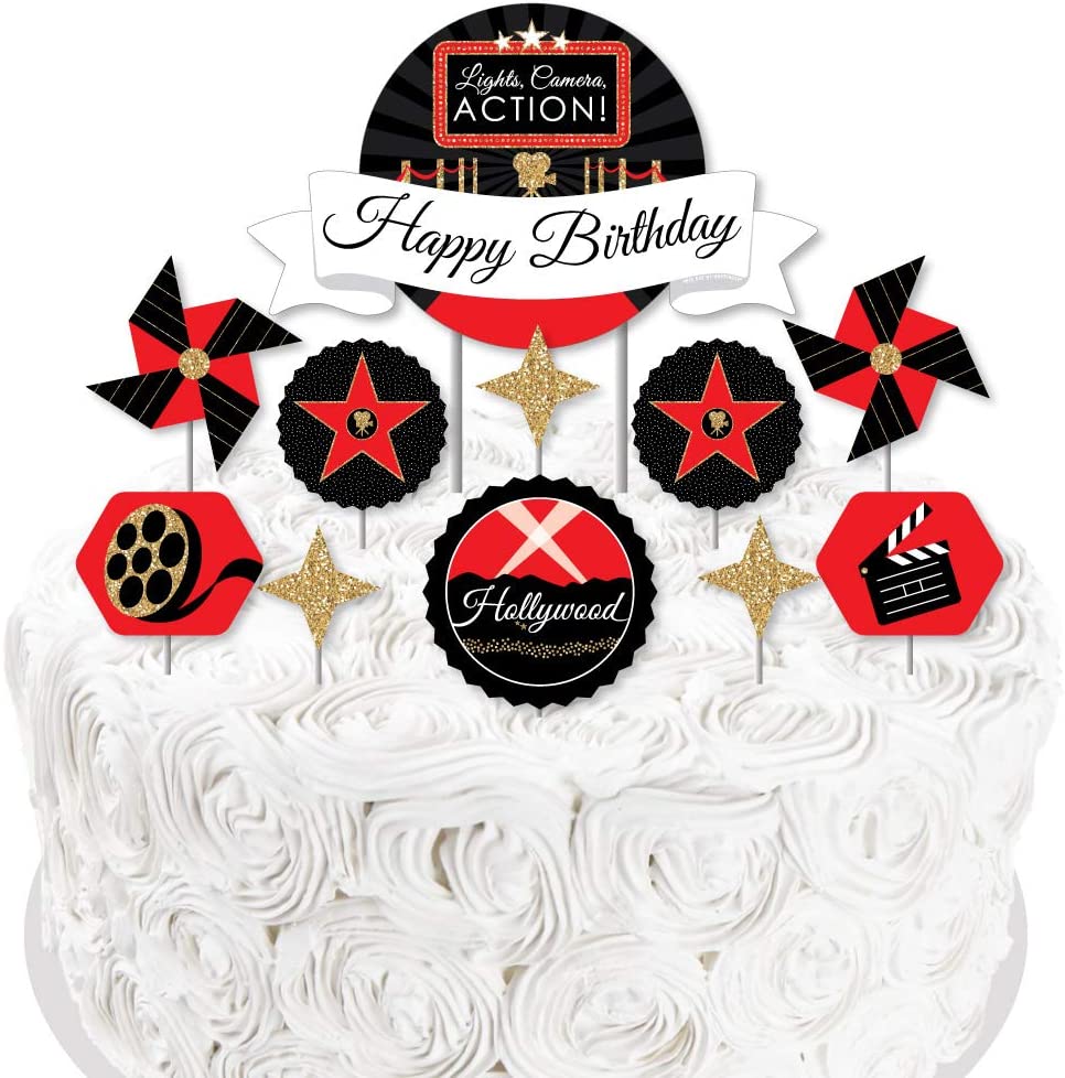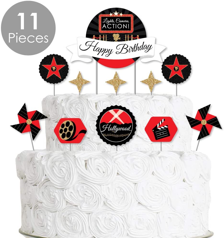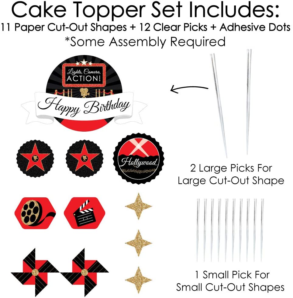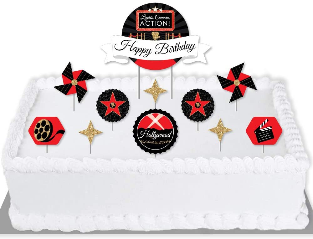 红地毯好莱坞 - 电影之夜生日派对蛋糕装饰套装 - 生日快乐蛋糕装饰套装 - 11 件
