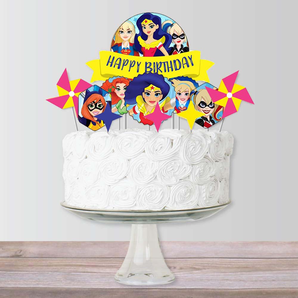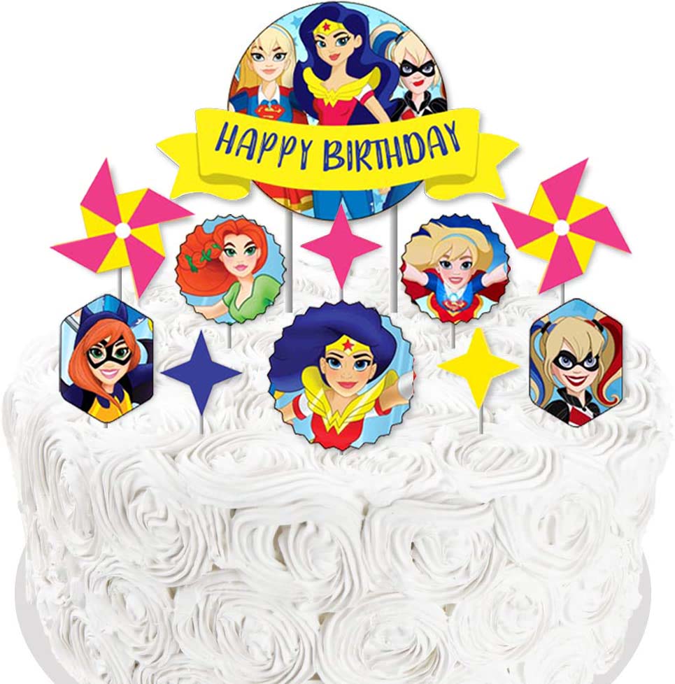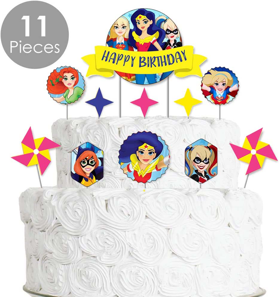 超级英雄女孩 - 生日派对蛋糕装饰套装 - 生日快乐蛋糕装饰套装 - 11 件