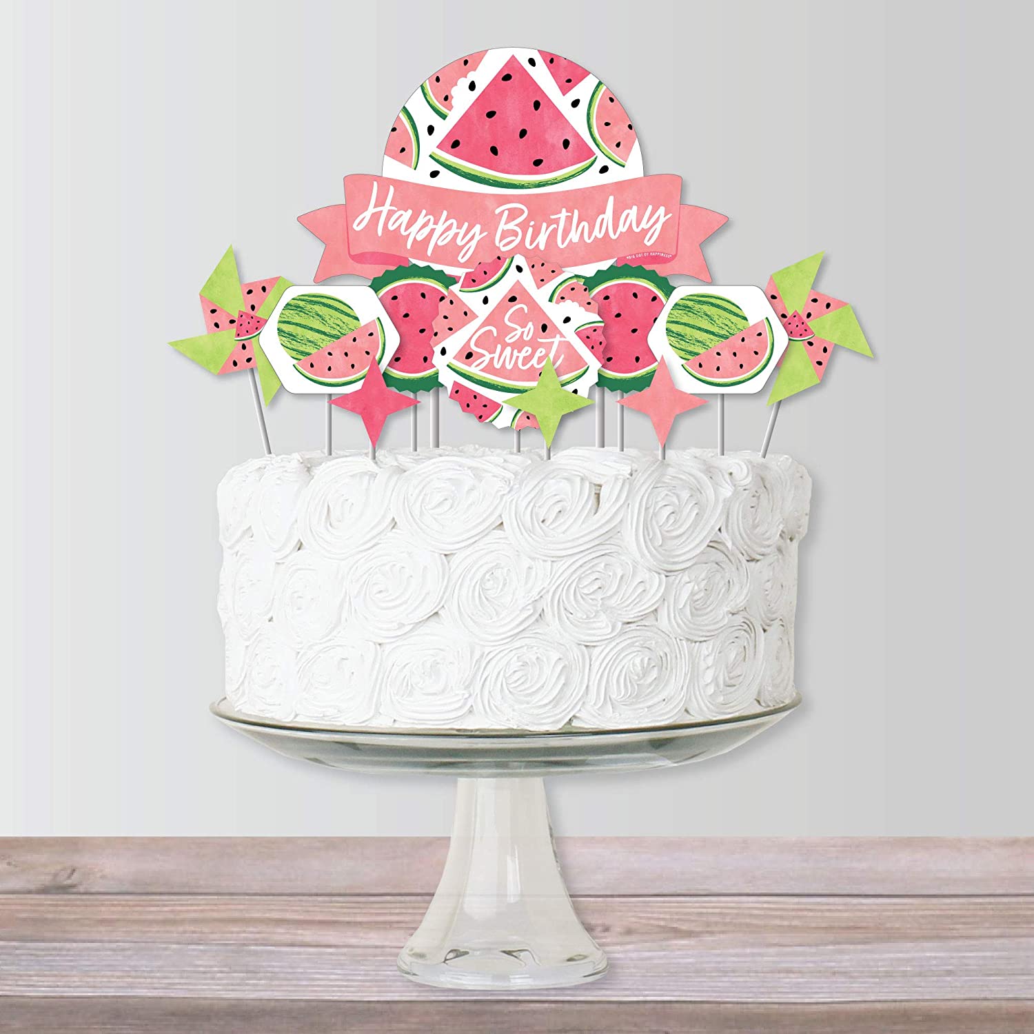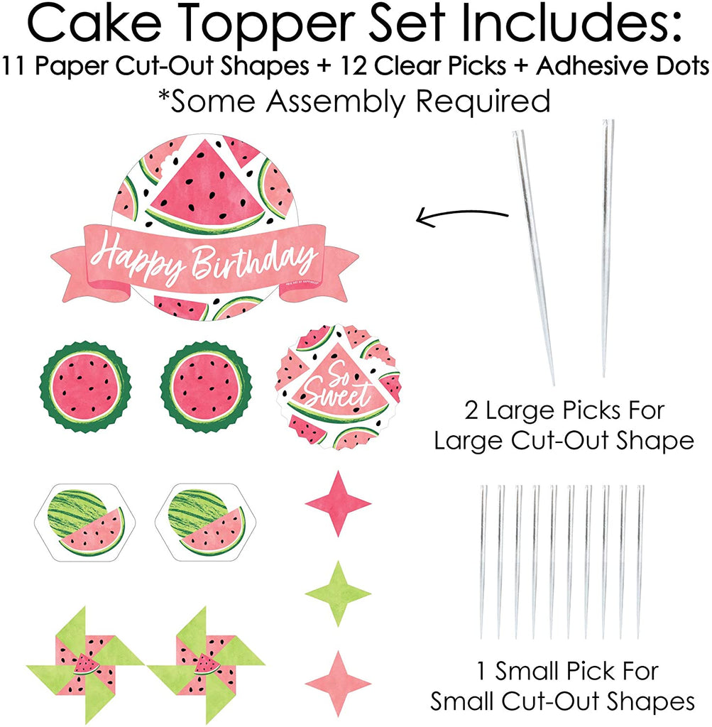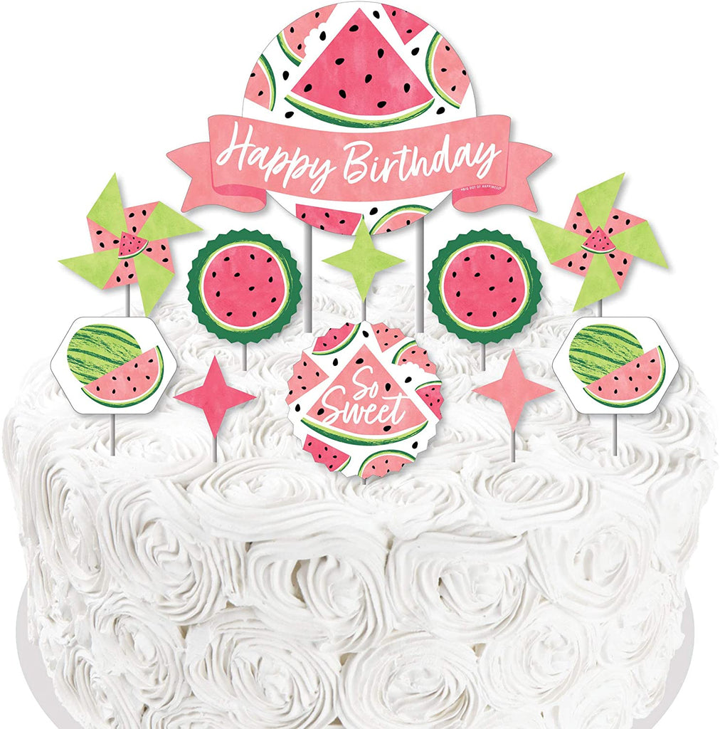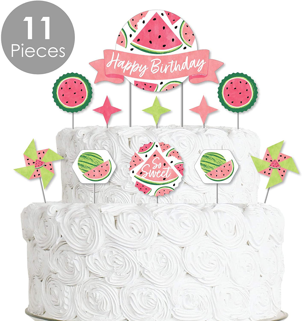 甜西瓜 - 生日派对蛋糕装饰套件 - 生日快乐蛋糕装饰套装 - 11 件