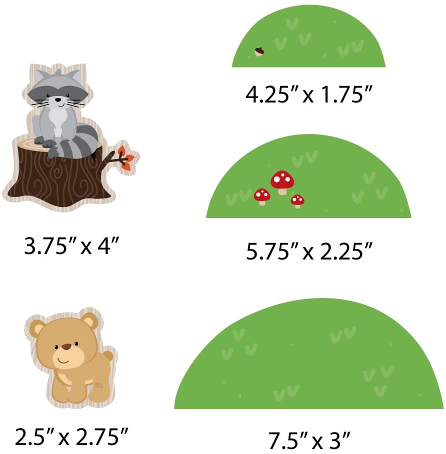 森林生物蛋糕装饰套装包含:11 个结实的卡纸剪纸片、12 个透明拨片和一张用于快速组装的粘点纸。需要一些组装步骤。