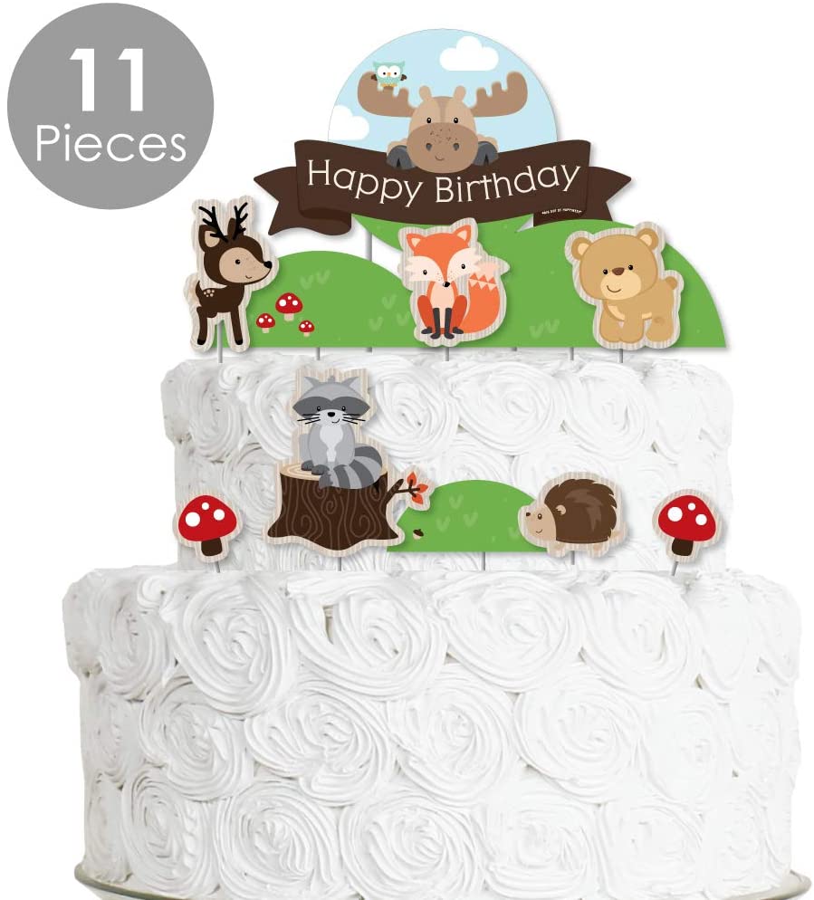Woodland Creatures - 生日派对蛋糕装饰套装 - 生日快乐蛋糕装饰套装 - 11 件