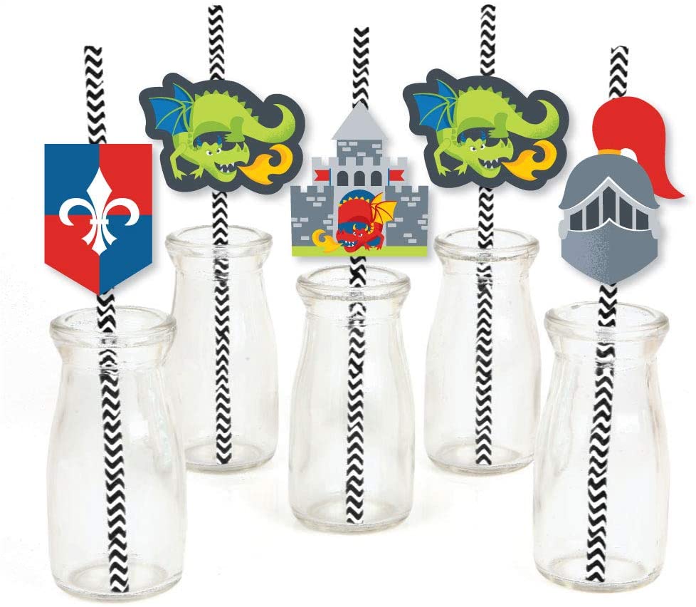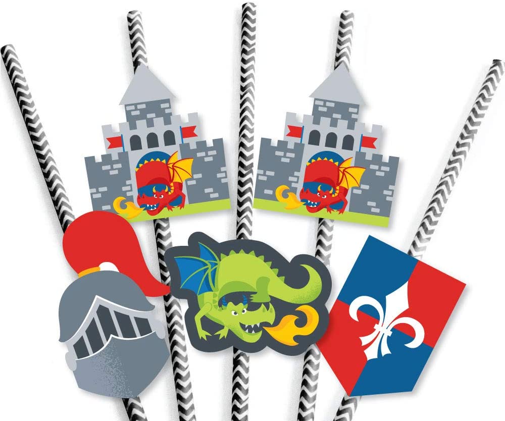 召唤所有骑士和龙 - 纸吸管装饰 - 中世纪派对或生日派对条纹装饰吸管 - 24 件套