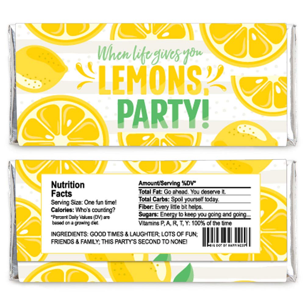 So Fresh - 柠檬标准糖果棒包装套装包括 24 个巧克力棒包装纸和 24 个箔纸,非常适合打造可爱的柠檬糖果自助餐或独特的柑橘柠檬水派对礼物。