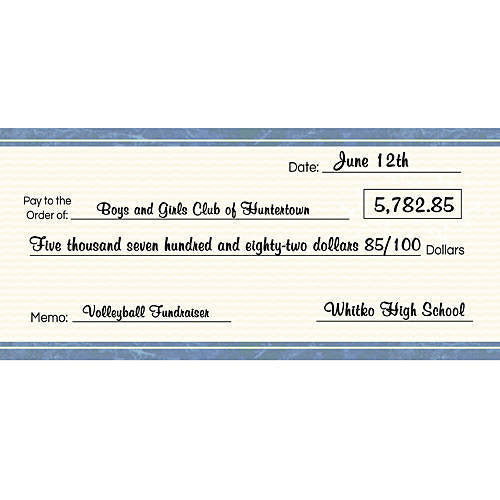用您的文字定制我们的巨型支票,让您的下一次活动更具特色。这款纸板剪纸尺寸为 2 英尺 2 英寸高 x 4 英尺 8 英寸宽。巨型支票非常适合用于宣布捐款、奖学金、促销活动等等!