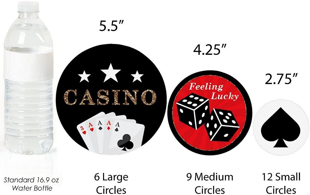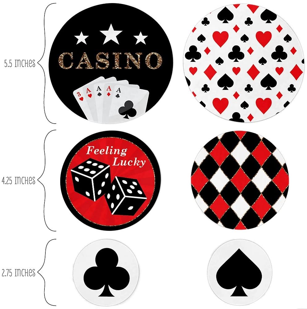 轻松的桌面装饰:拉斯维加斯巨型圆形五彩纸屑提供三种不同尺寸的图案,可与各种风格相协调。您可以将它们撒在派对餐桌上,或将它们挂在餐桌中央,或在上面打孔串起来,作为生日或单身派对的横幅。无论您如何运用,赌场纸屑都能让您眼前一亮。
