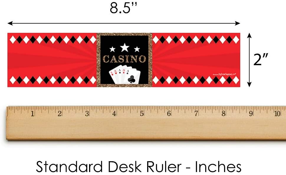 独特的饮料吧:拉斯维加斯 - 赌场水瓶标签将为您的单身派对、舞会或生日派对打造协调的饮料区。将拉斯维加斯 - 赌场水瓶标签贴在标准水瓶、迷你水瓶、汽水瓶和单份果汁容器上。水瓶标签也可以贴在圆柱形容器上,打造拉斯维加斯 - 赌场风格的中心装饰。