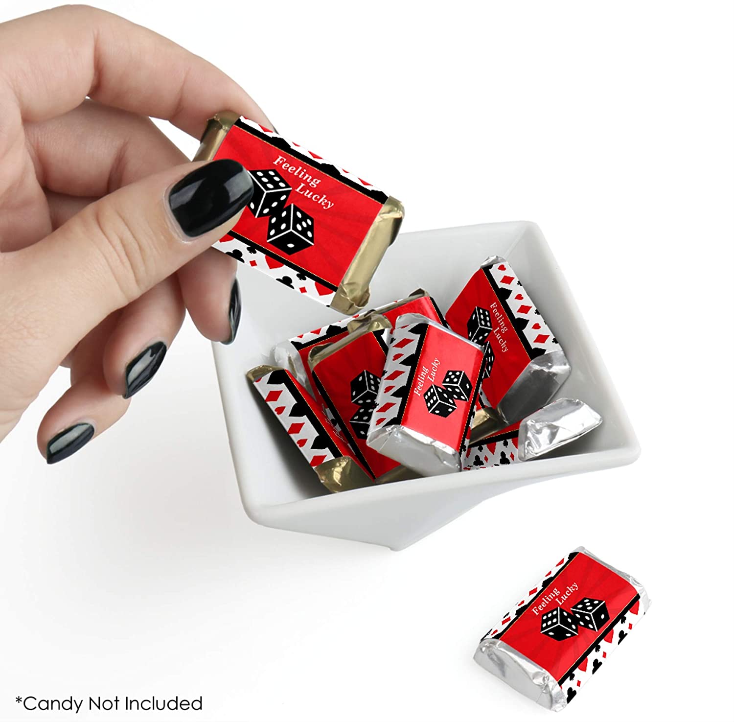 优质派对用品:拉斯维加斯迷你糖果标签采用专业印刷,印在贴纸上,光泽度如同照片般细腻。每张标签都经过逐一检查,并手工精心包装。只需将每张贴纸包裹在迷你巧克力糖果上即可。