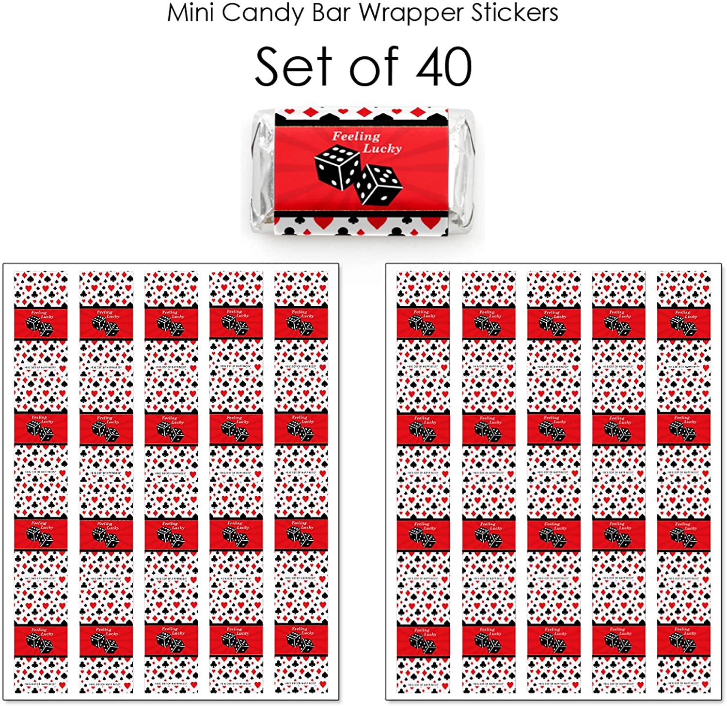 拉斯维加斯 - 迷你糖果包装贴纸 - 赌场派对小礼品 - 40 张