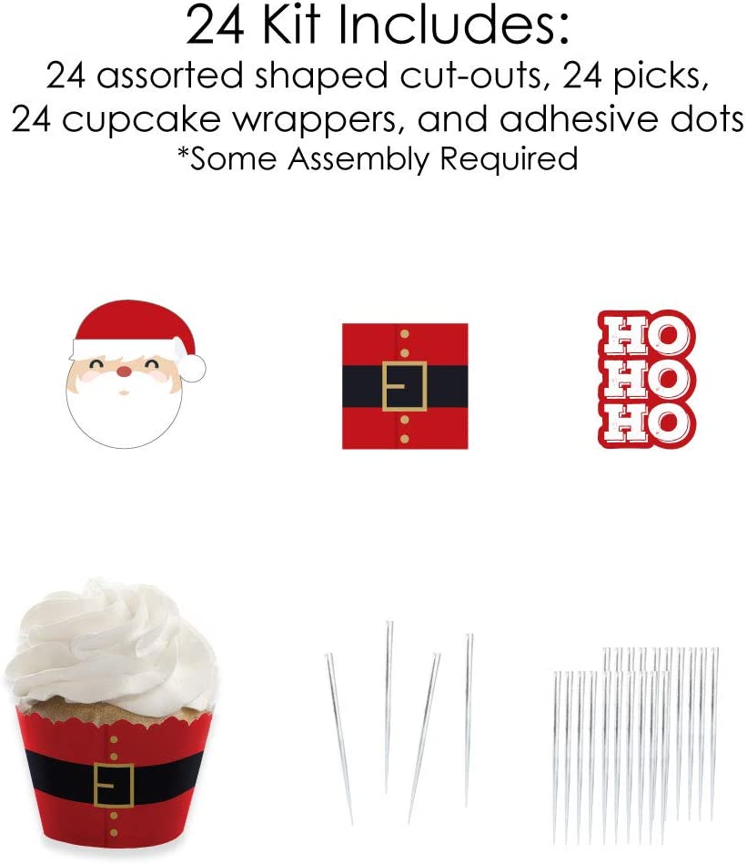 轻松派对装饰:圣诞老人圣诞派对纸杯蛋糕装饰套装,轻松打造圣诞老人主题派对。24 件套纸杯蛋糕装饰套装,助您打造完美的甜点自助餐,或打造令人印象深刻的纸杯蛋糕塔。