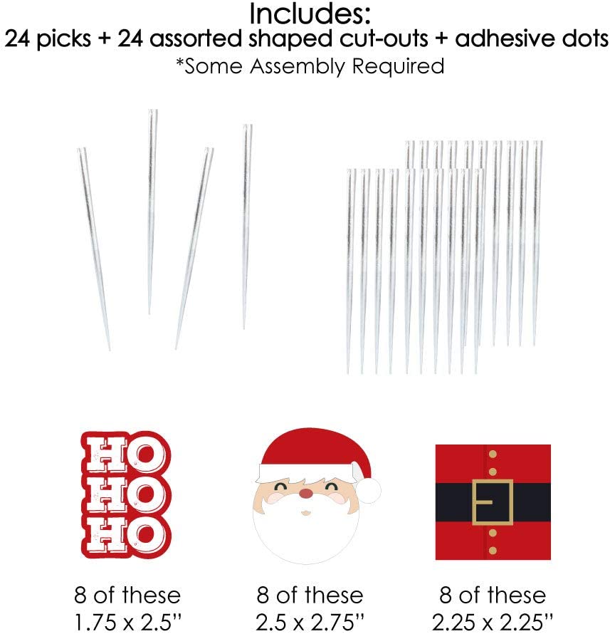 圣诞老人甜点纸杯蛋糕装饰包含24个透明糖果签、24个异形剪纸和贴纸,方便组装。DIY圣诞老人纸杯蛋糕用品是圣诞派对的完美之选。
