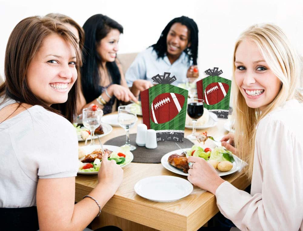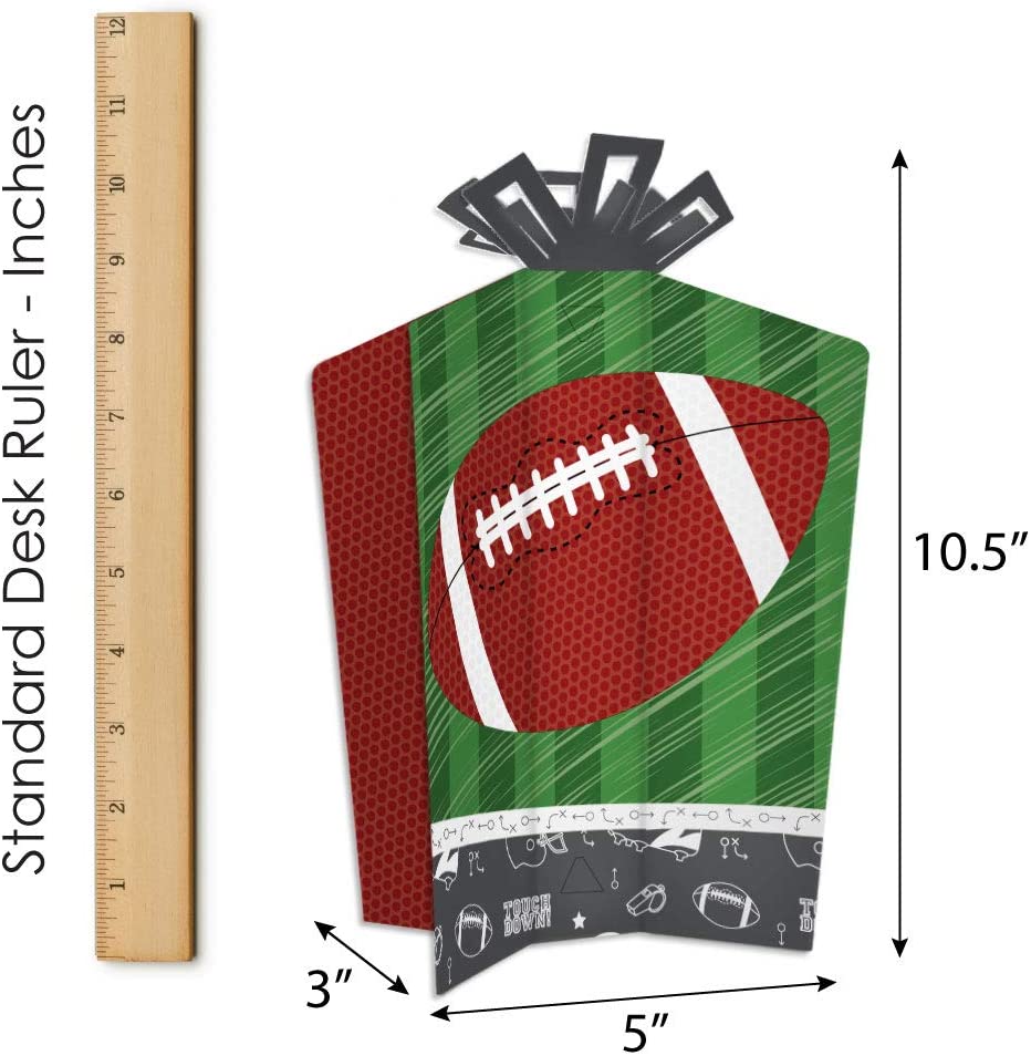 简易桌面装饰:每个端区 - 橄榄球中心装饰尺寸为 5 英寸宽(正面/背面)x 3 英寸宽(侧面)x 10.5 英寸高。这套 10 件桌面装饰只需轻松折叠,即可将每个中心装饰展开成您想要的外观。轻松 DIY 折叠组装:在平面上沿着刻痕折叠,使中心装饰直立并保持平衡。