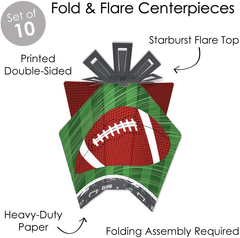 高品质派对用品:End Zone - 橄榄球折叠喇叭形中心装饰采用专业双面印刷,印于结实的卡纸上,光亮如照片。每件产品均经过单独检查,并手工精心包装。折叠喇叭形中心装饰送达时为平整状态,易于折叠,方便快速组装。