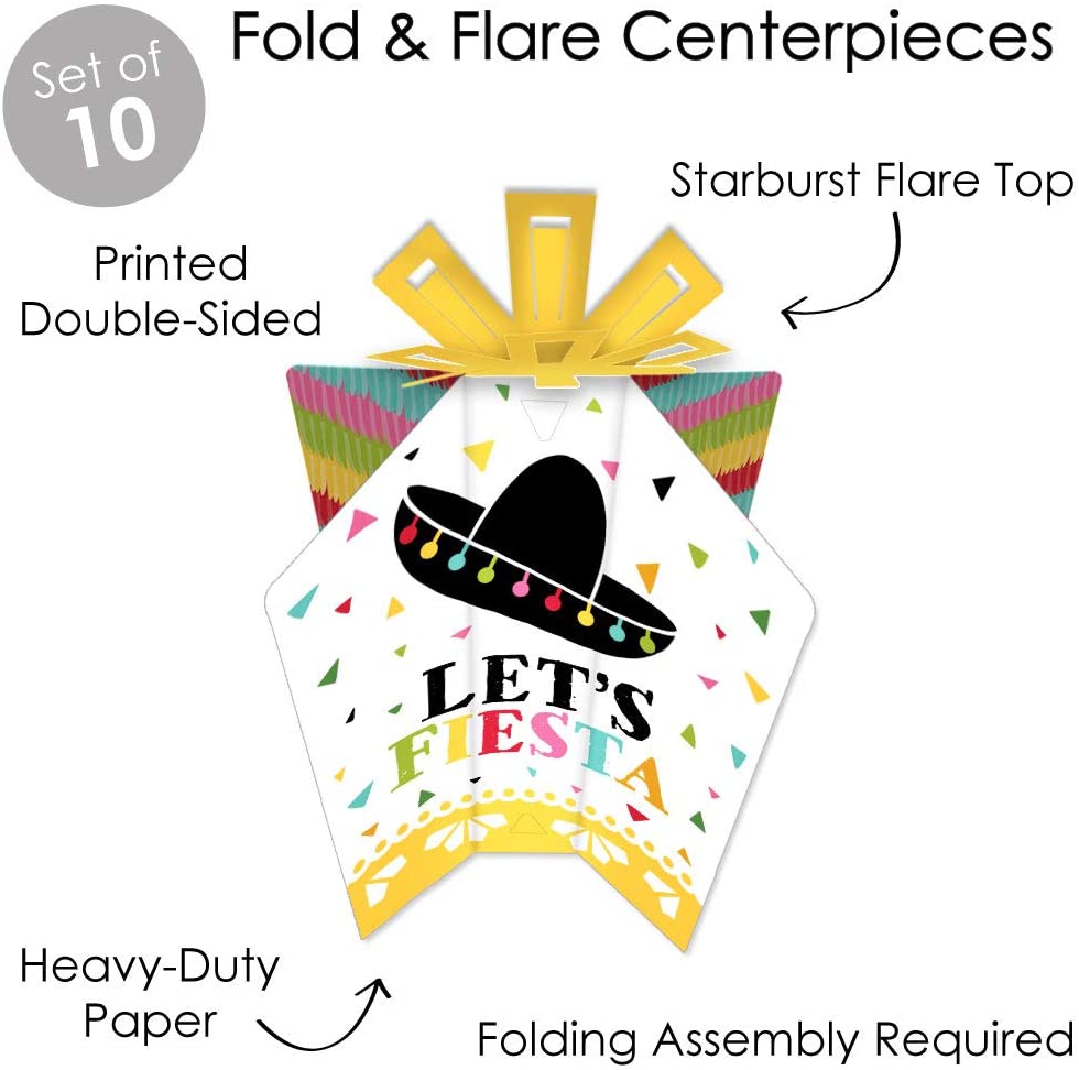 Let's Fiesta - 餐桌装饰 - 墨西哥节日折叠和喇叭形餐桌摆饰 - 10 个