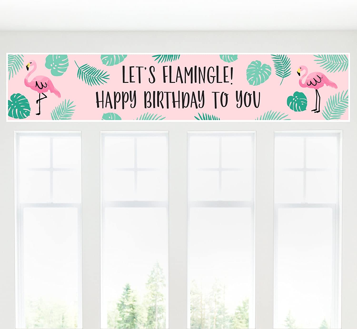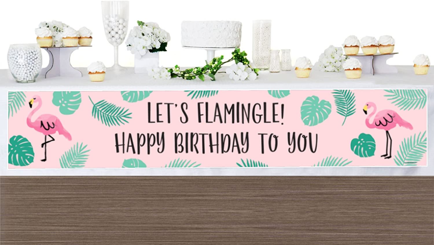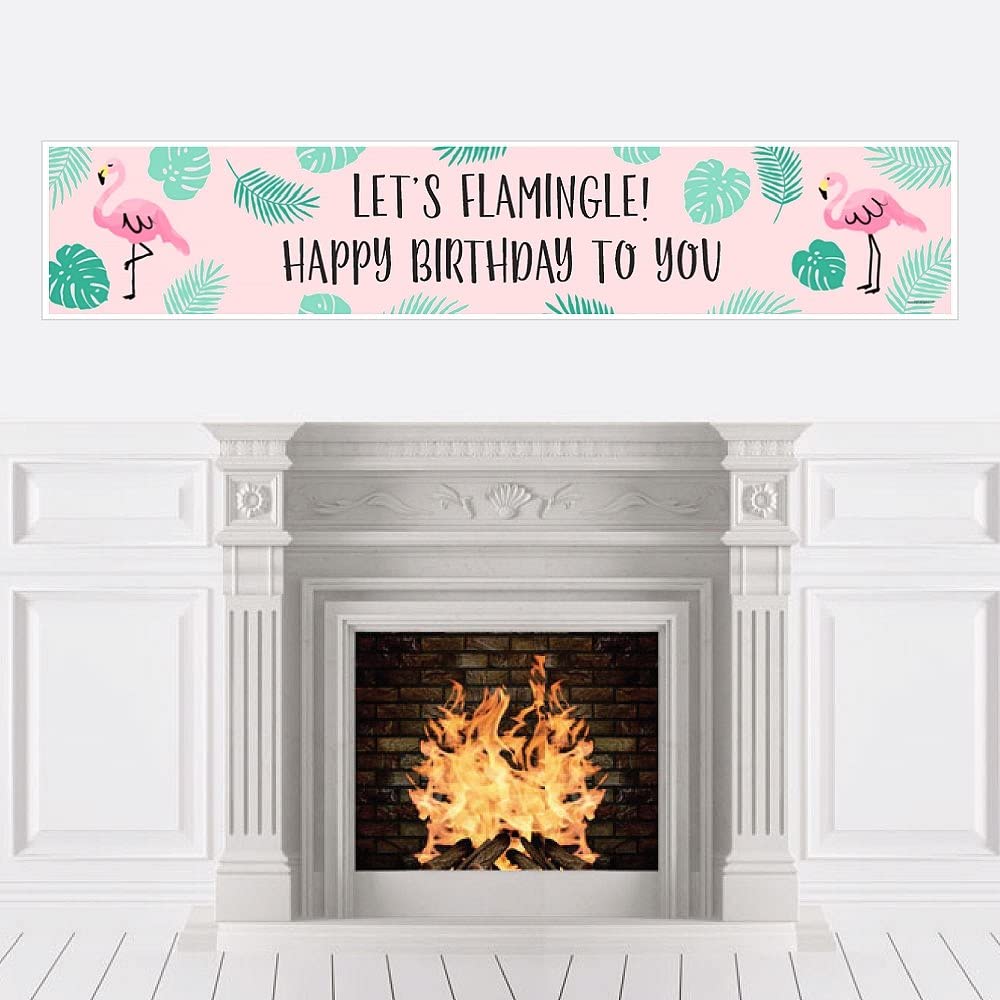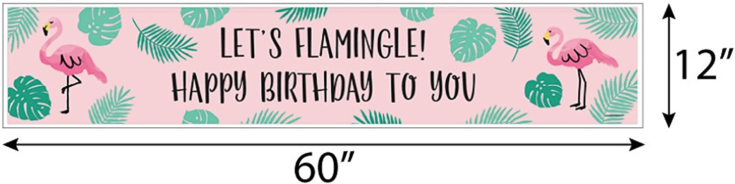 粉红火烈鸟 - 菠萝派对 - 热带夏日生日快乐装饰派对横幅