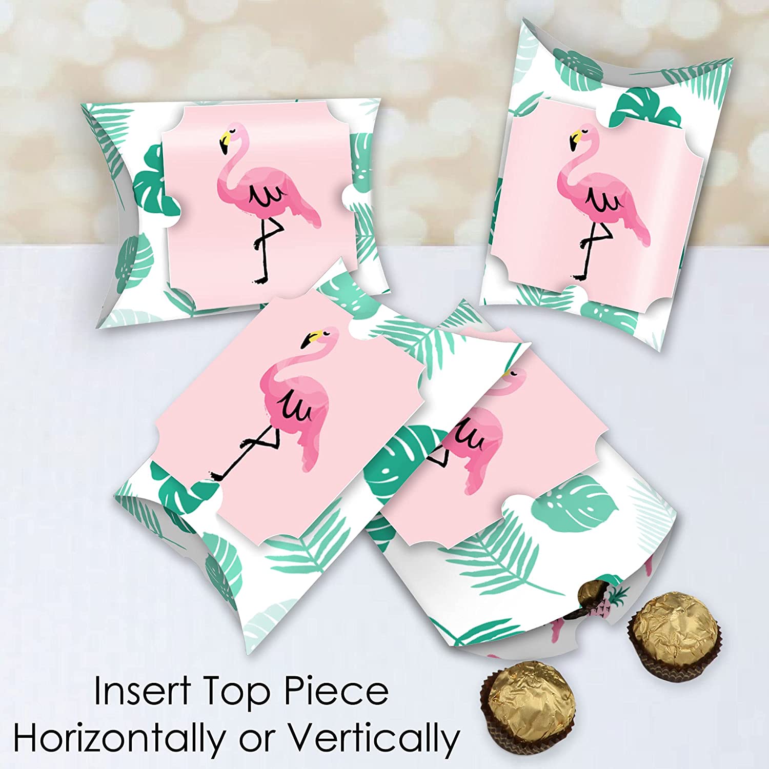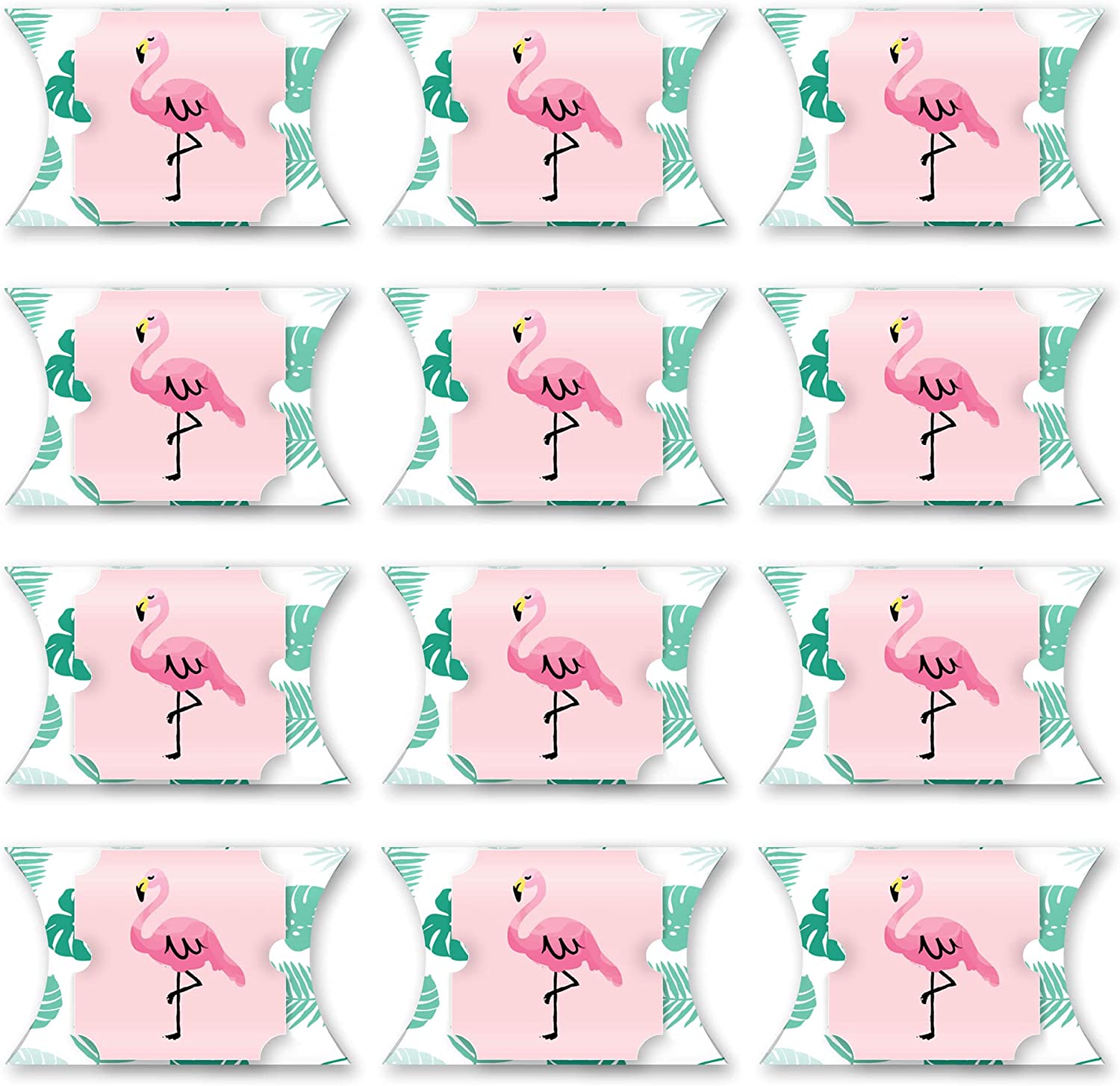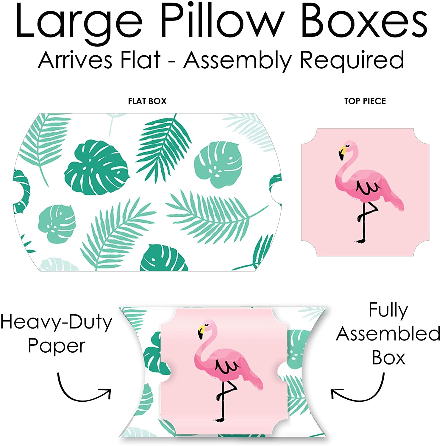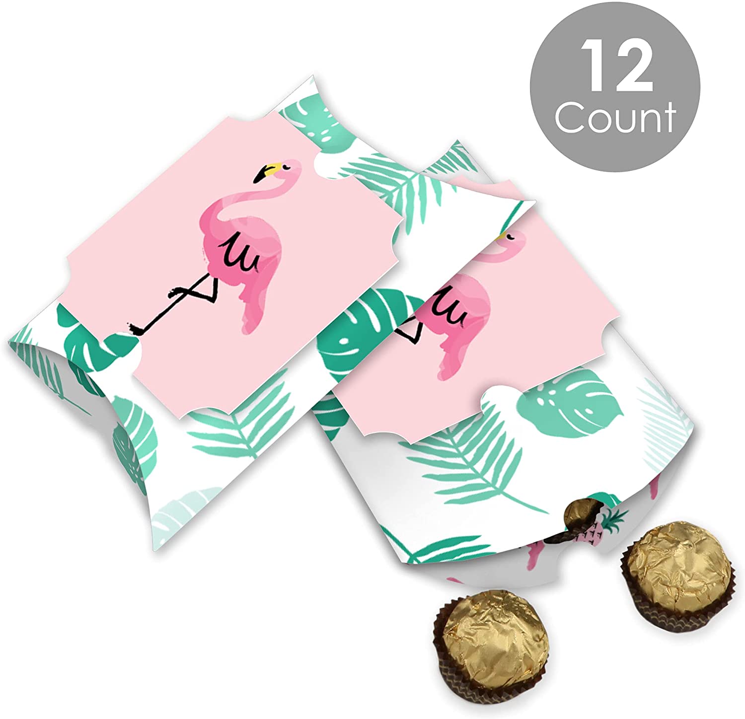 粉色火烈鸟 - 菠萝派对大号枕头盒包含12个枕头盒和12个装饰性顶部装饰。枕头盒发货时为扁平状,需要一些简单的组装。这些粉色火烈鸟 - 菠萝派对礼品盒是您下次迎婴派对或生日派对的绝佳赠品。