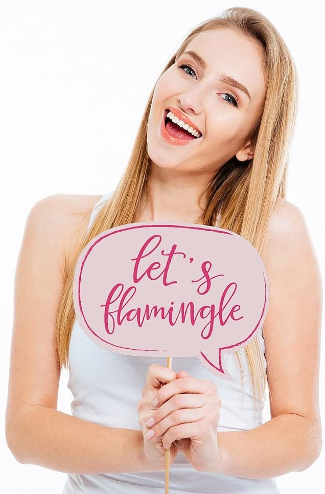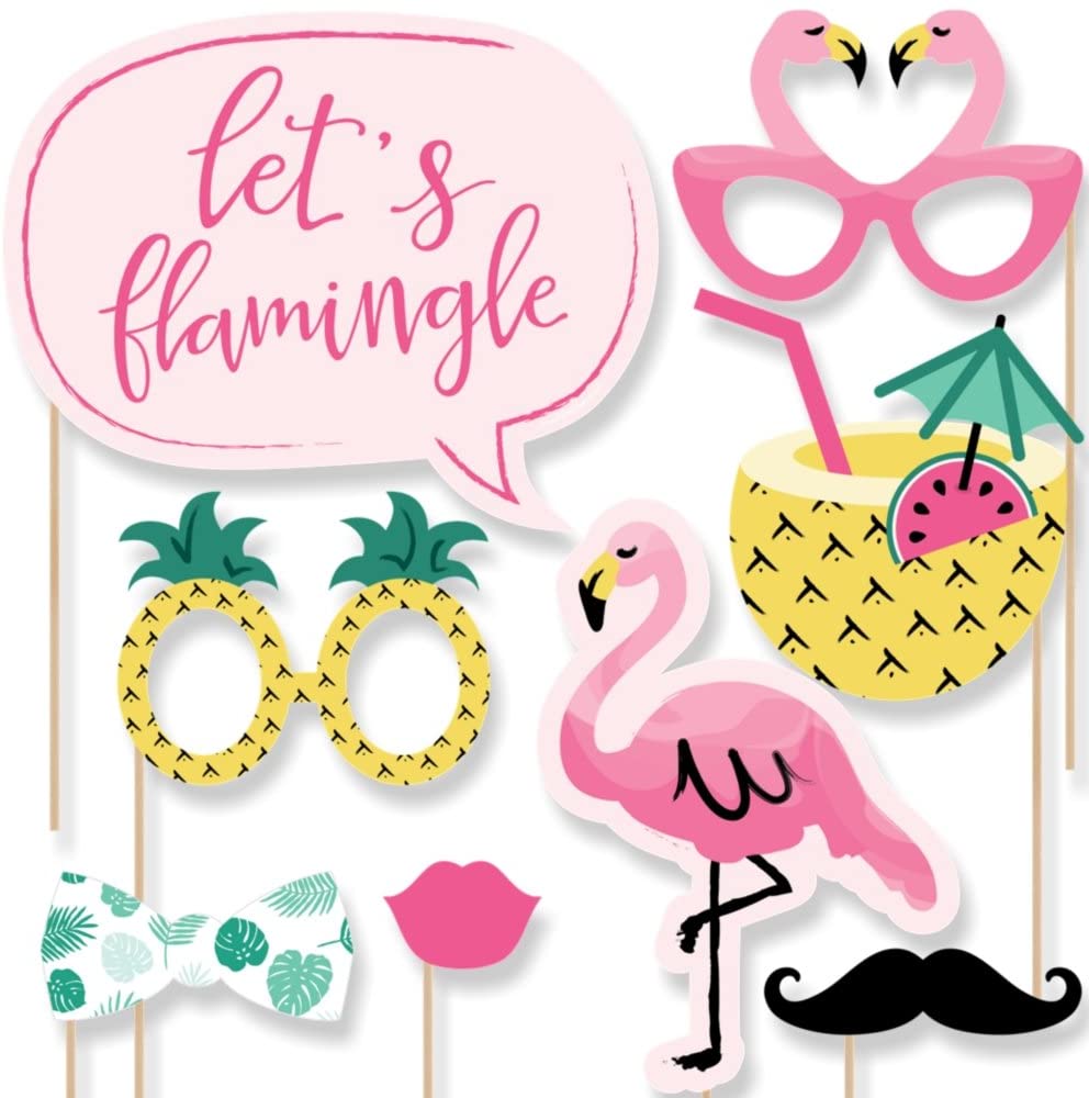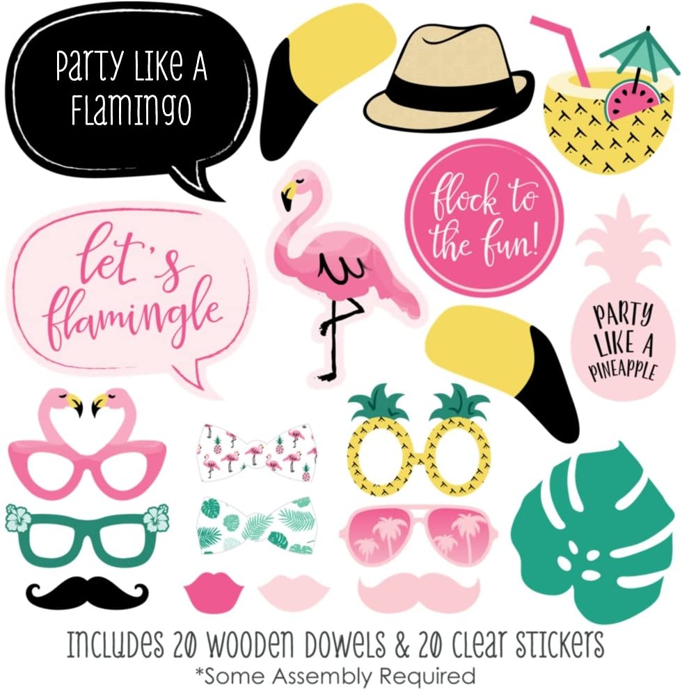 高品质派对用品:火烈鸟 - 菠萝派对照相亭道具采用专业印刷,印在厚卡纸上。它们已裁剪好,可直接使用随附的木钉和粘合剂进行组装。