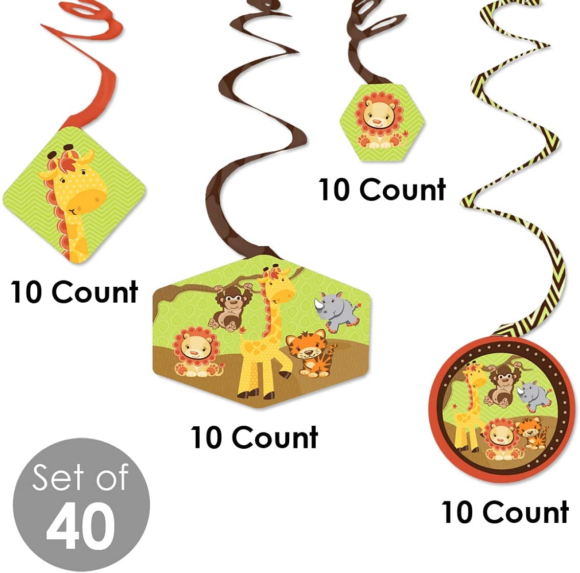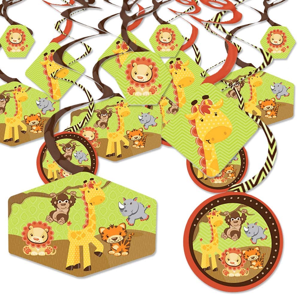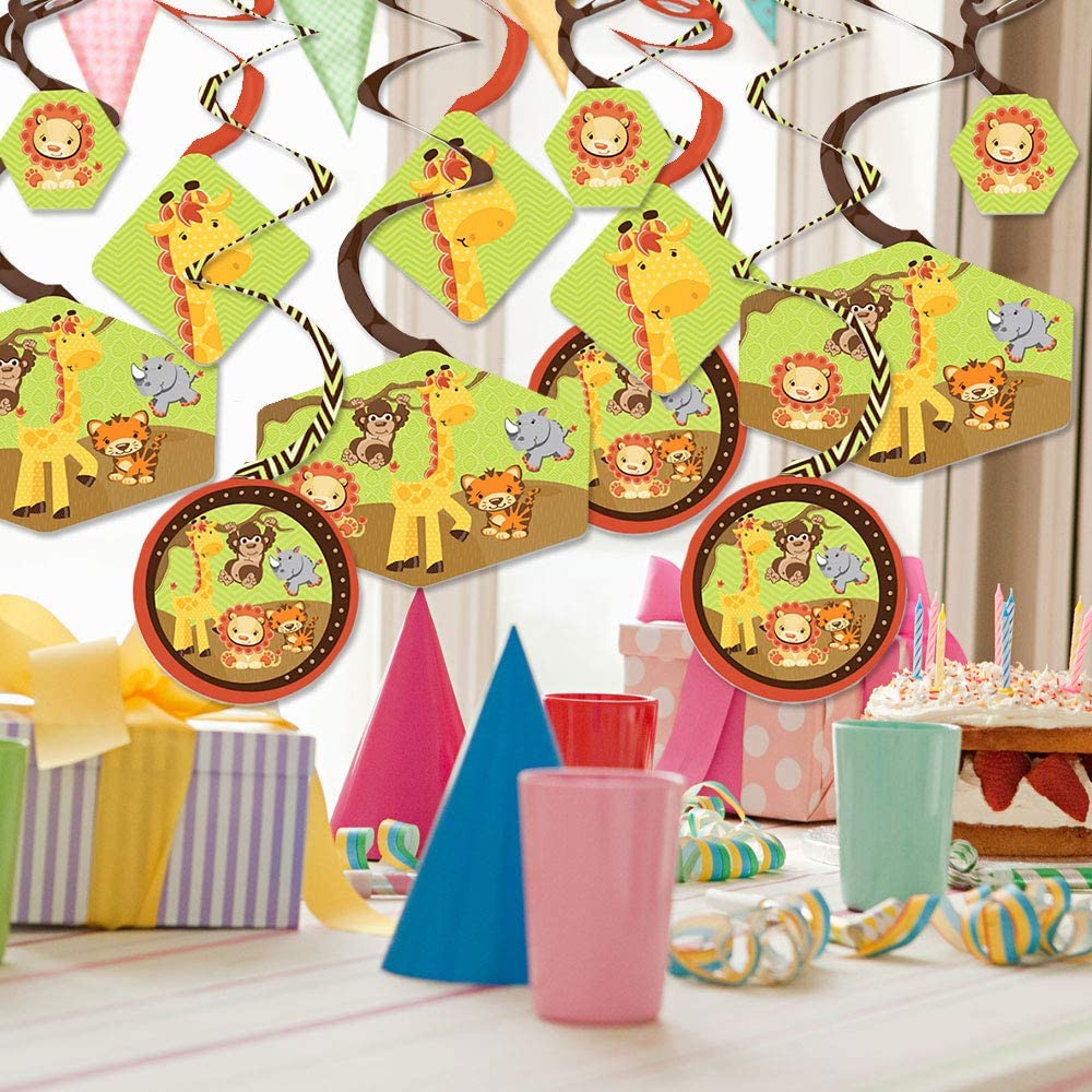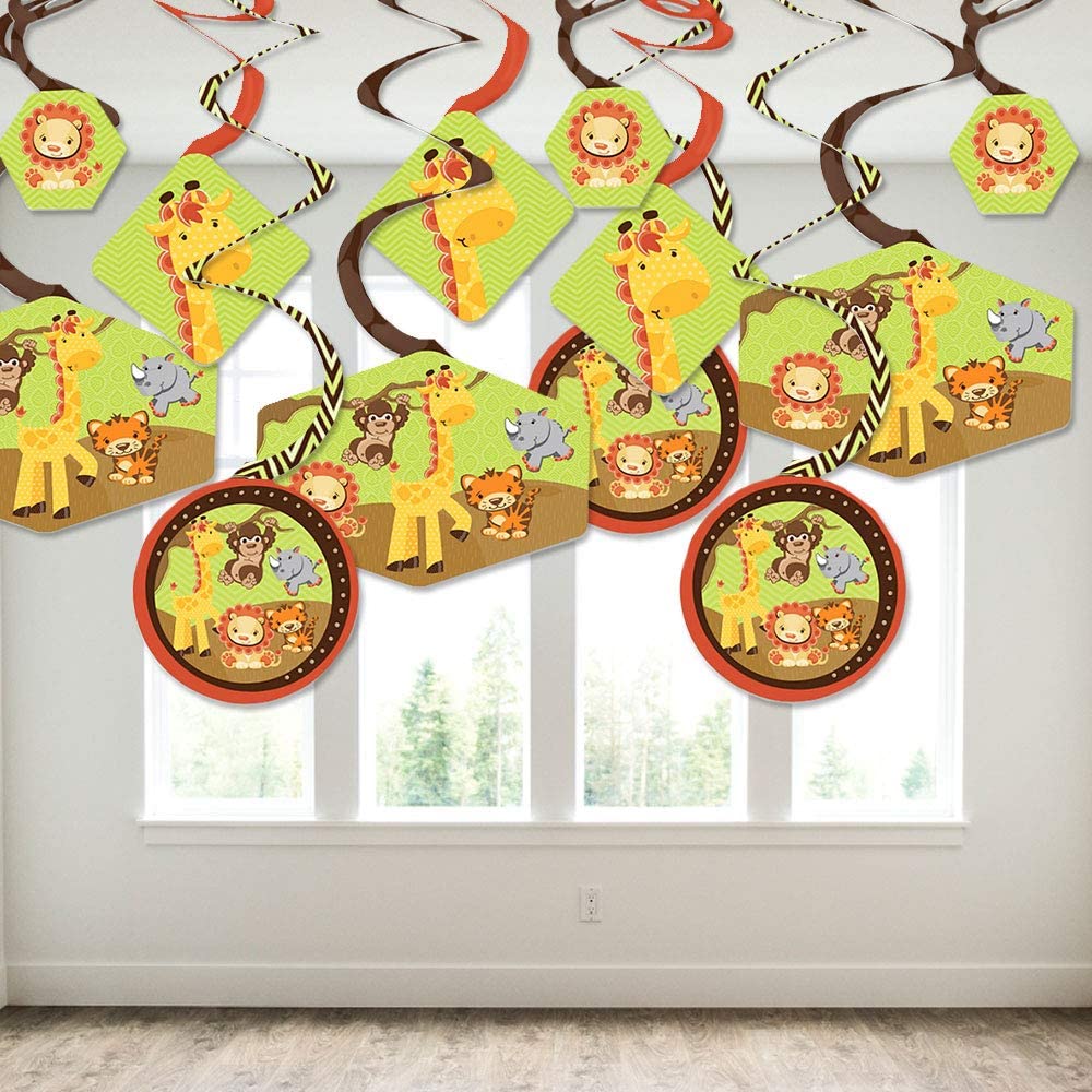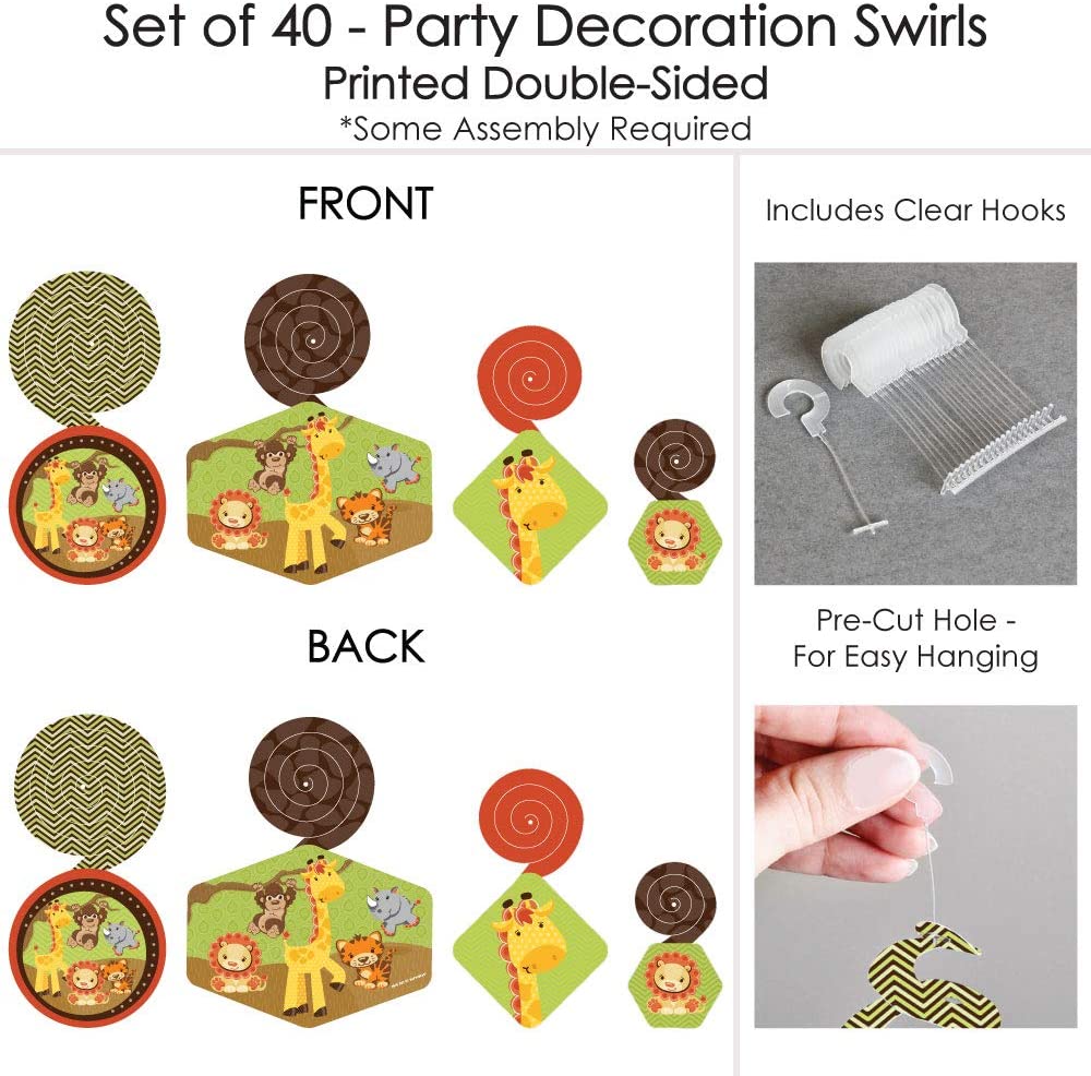 Funfari - 趣味野生动物园丛林 - 婴儿洗礼或生日派对悬挂装饰 - 派对装饰漩涡 - 40 件套