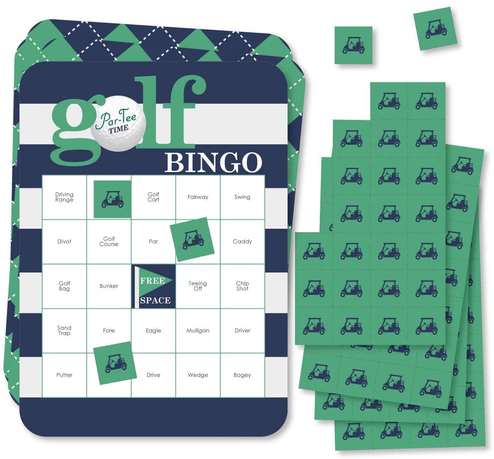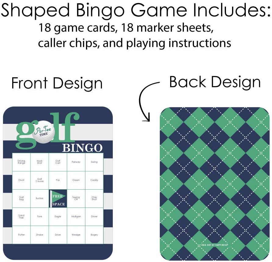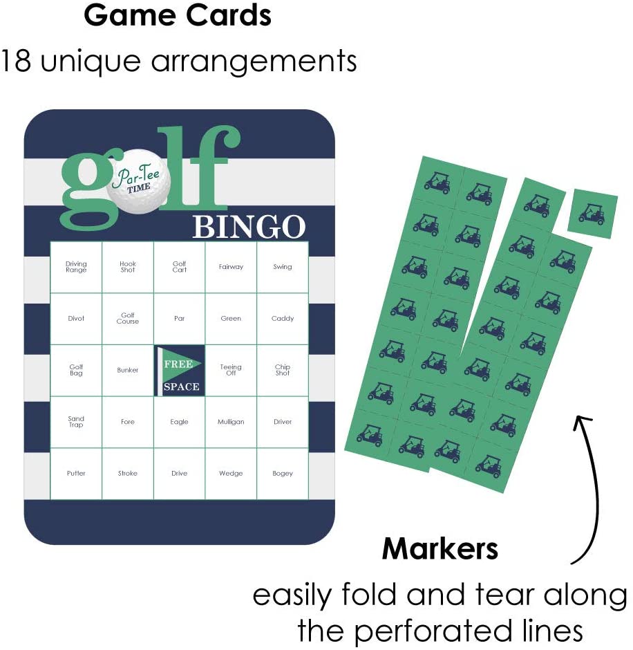 标准开球时间 - 高尔夫宾果卡和标记 - 生日或退休派对宾果游戏 - 18 件套