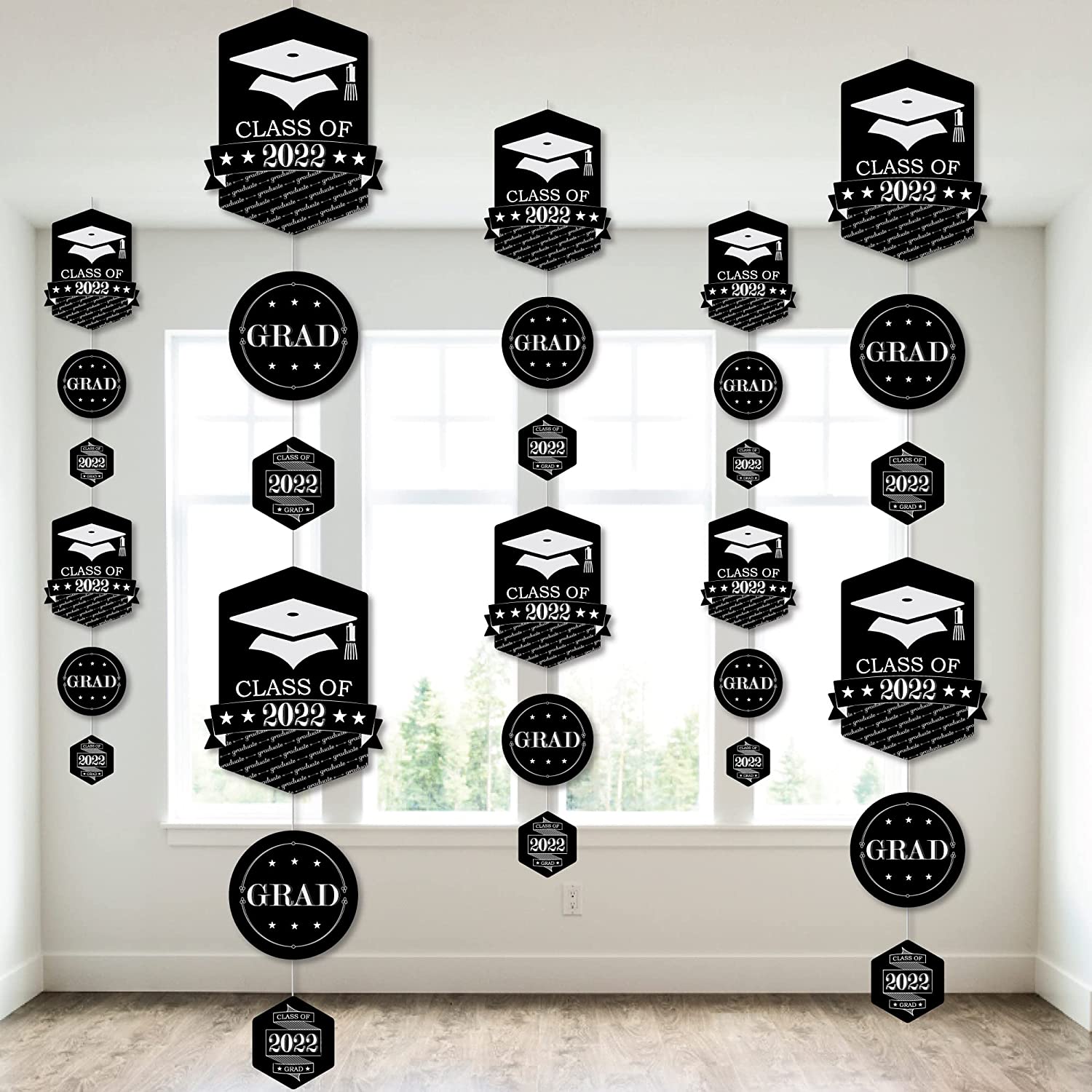 毕业欢呼 - 2022 年毕业派对 DIY 吊饰背景 - 悬挂式垂直装饰 - 30 件
