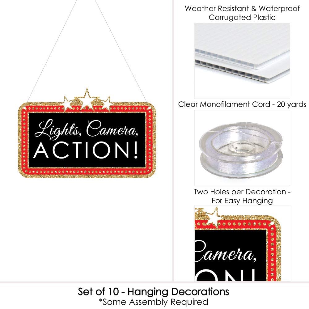 10 件套电影胶片和场记板悬挂式门廊和树庭院装饰,包含 10 个红毯好莱坞装饰和 20 码单丝绳,非常适合节日户外装饰。这款户外悬挂装饰双面印刷,无论您选择在哪里展示,都能惊艳亮相。