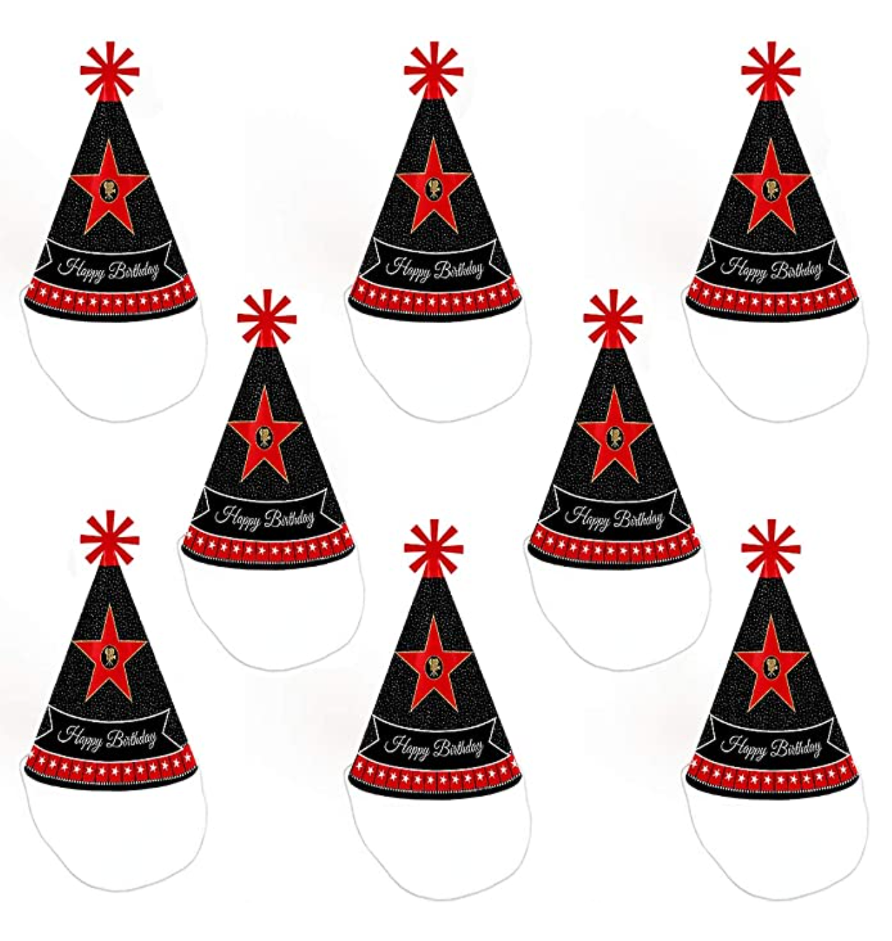 红地毯好莱坞 - 锥形生日快乐派对帽(儿童和成人适用)- 8 件套