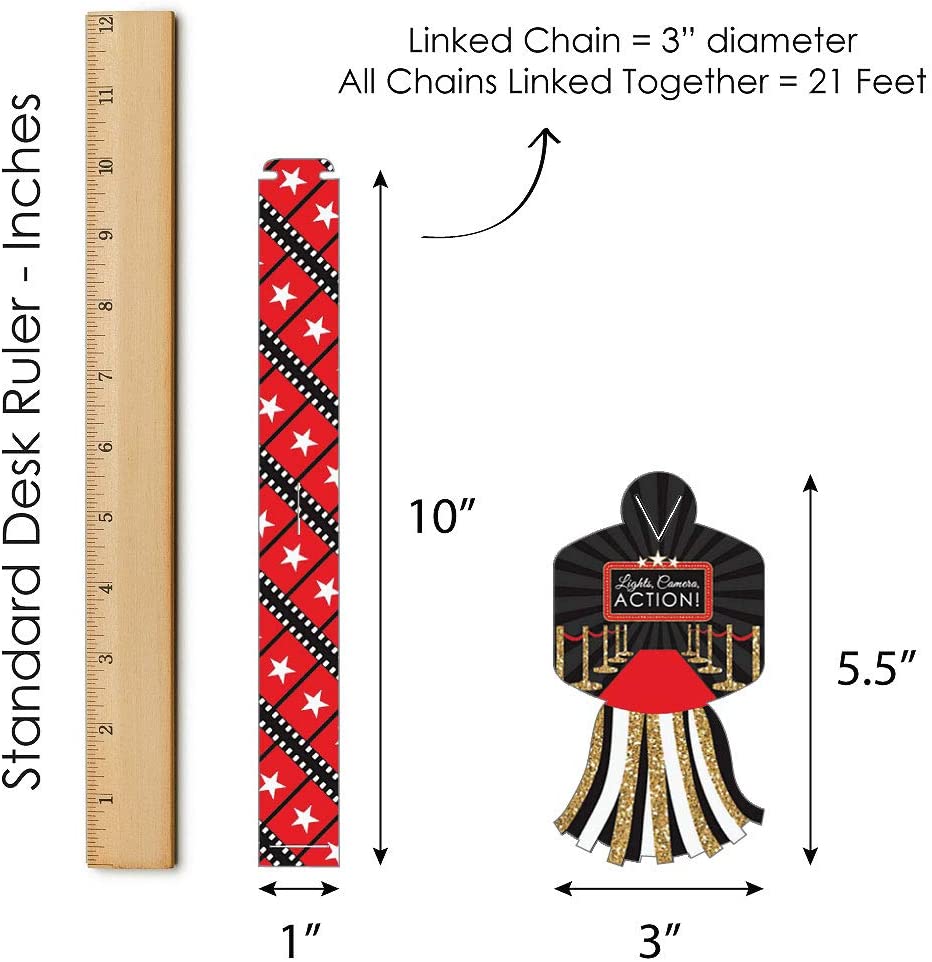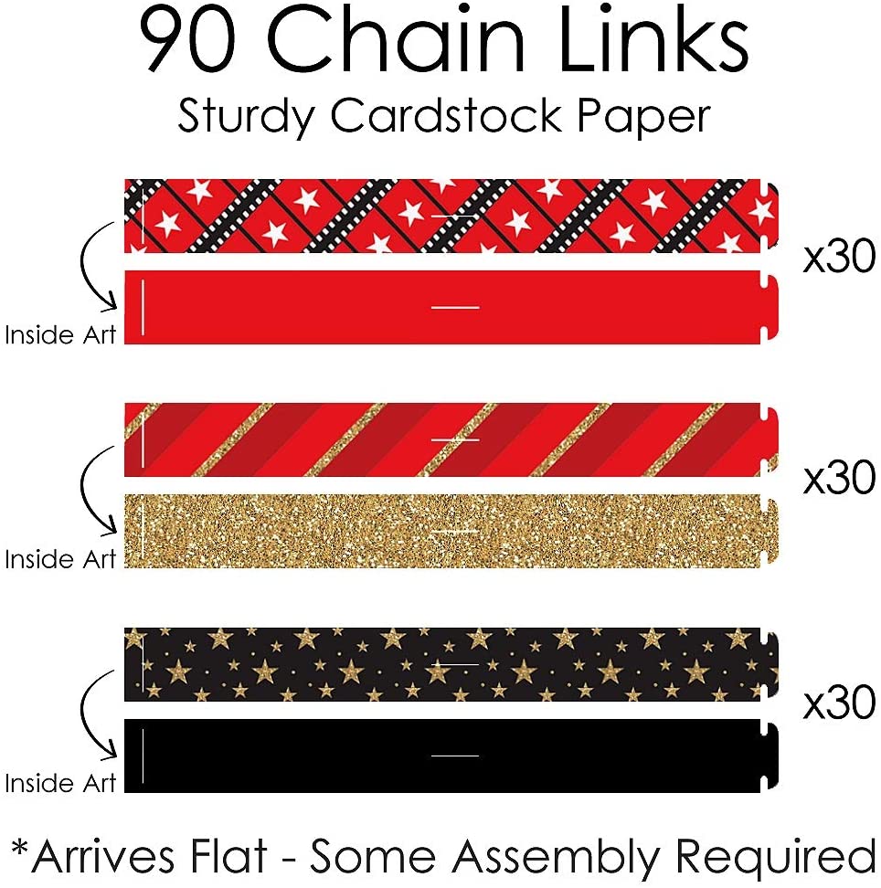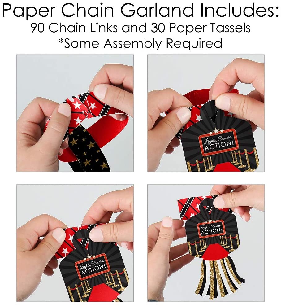 红毯好莱坞 - 90 个链环和 30 个纸流苏装饰套件 - 电影之夜派对纸链花环 - 21 英尺