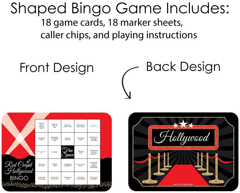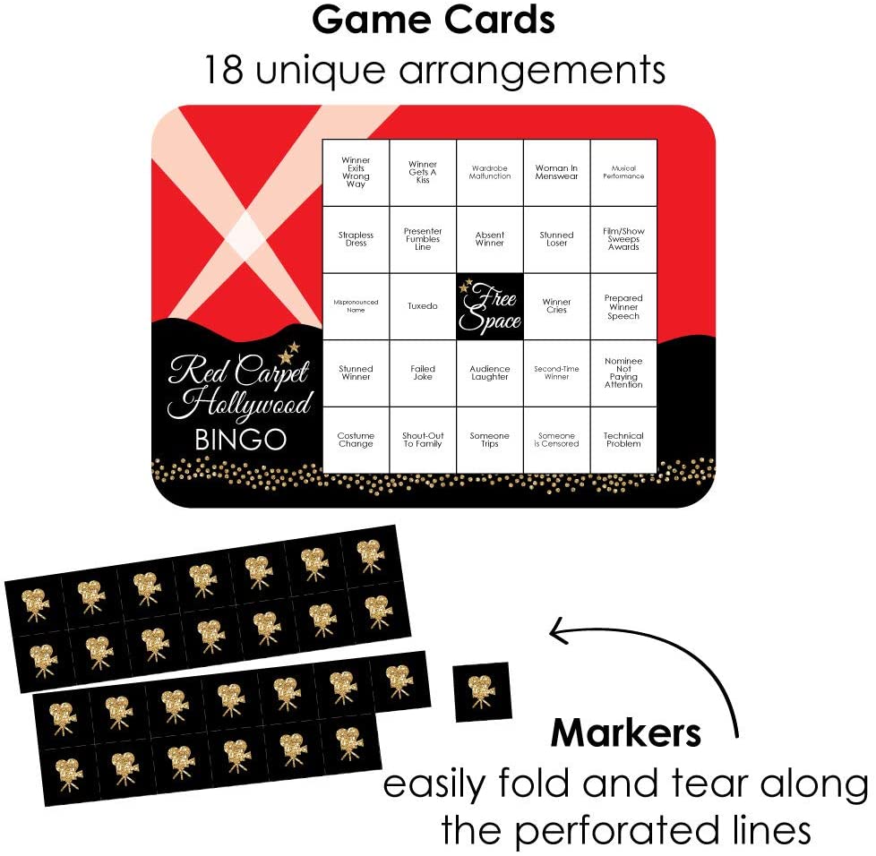 红毯好莱坞 - 颁奖典礼宾果卡和记号笔 - 电影之夜派对宾果游戏 - 18 套