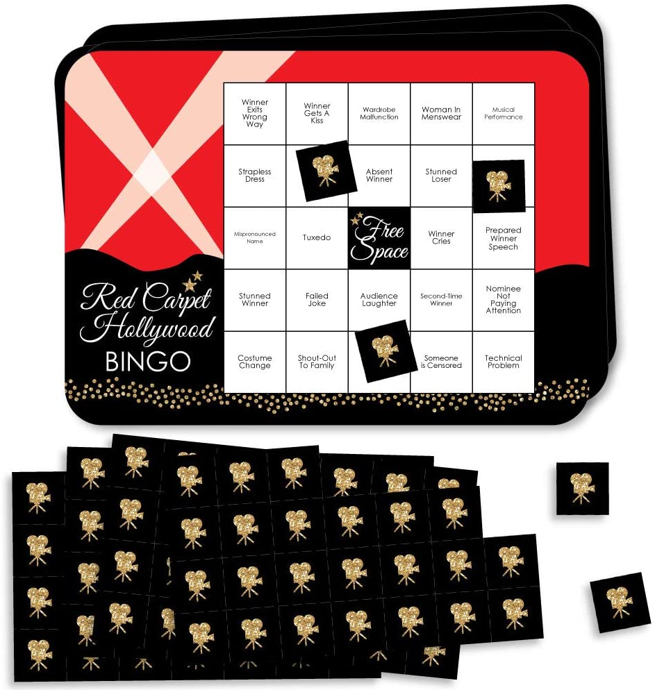 派对必备:宾果游戏是一款简单经典的红毯好莱坞游戏,每个人都会乐在其中。电影奖项宾果卡和马克笔为这款经典游戏赋予了全新面貌,红毯好莱坞扑克牌和与活动相关的文字取代了数字。