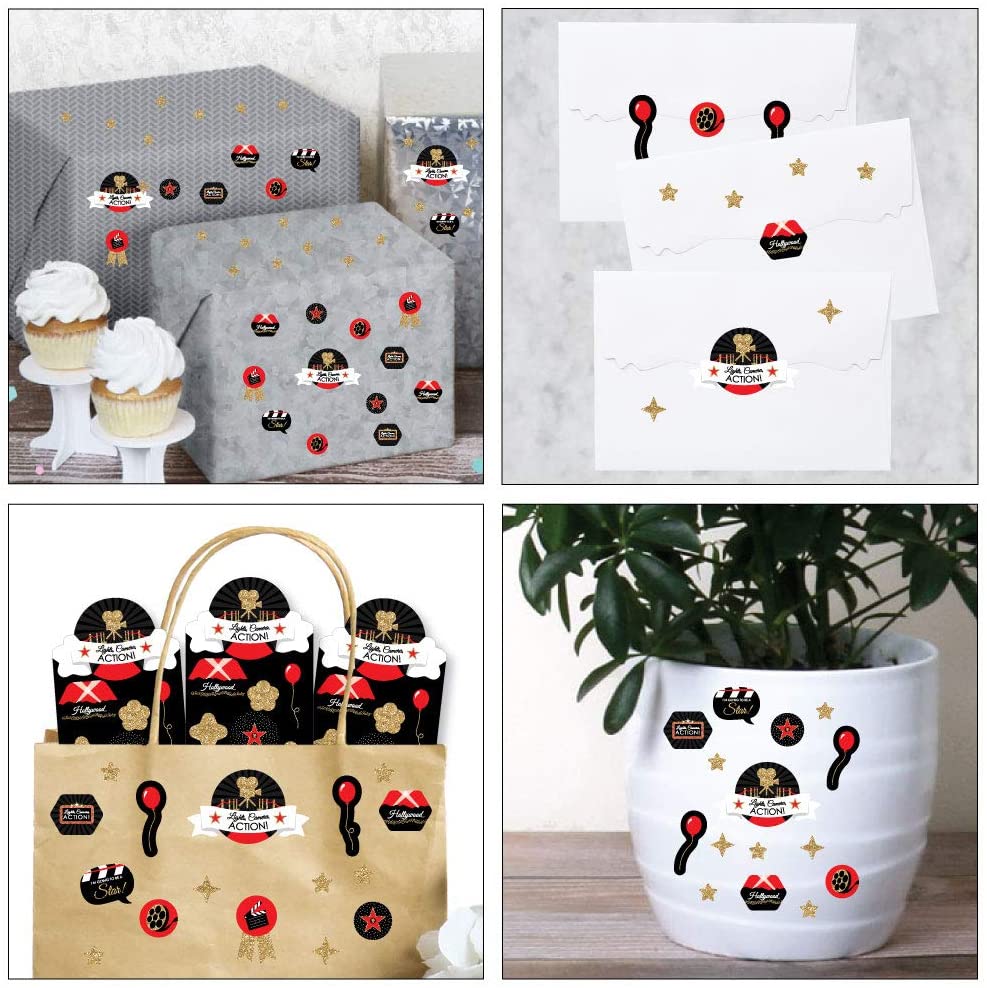 高品质派对用品:红毯好莱坞儿童贴纸套装包含16张配套贴纸,尺寸为2.5英寸宽 x 7.5英寸高。每张贴纸均采用易撕贴纸纸专业印刷,每张16张贴纸。