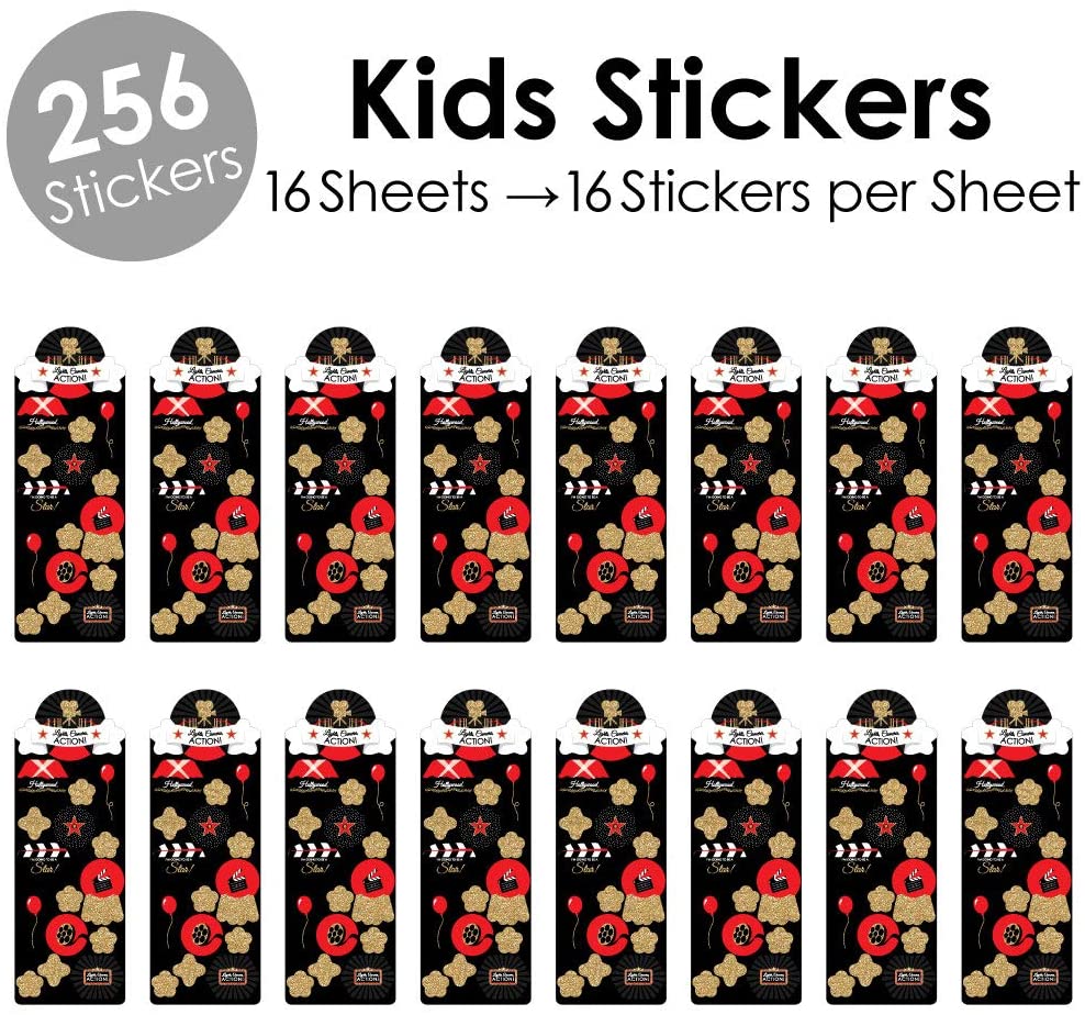 红地毯好莱坞 - 电影之夜生日派对儿童贴纸 - 16 张 - 256 张