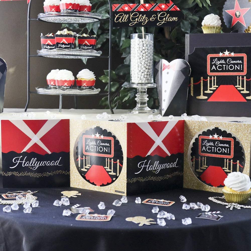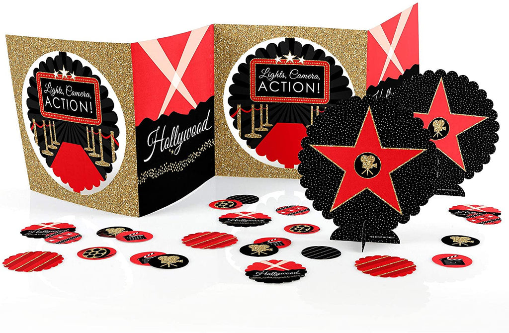 红地毯好莱坞 - 电影之夜派对中心装饰和桌面装饰套件