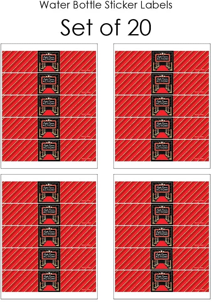 红毯好莱坞 - 电影之夜派对水瓶贴纸标签 - 20 张